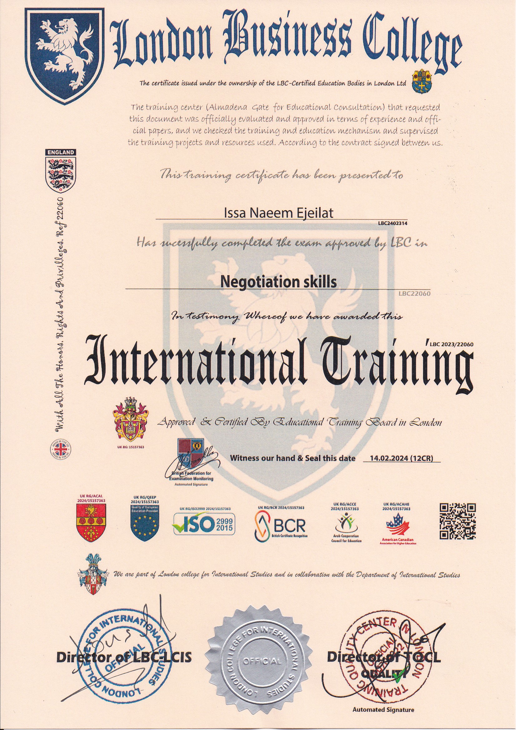 Approved by (Training Quality Center in London)