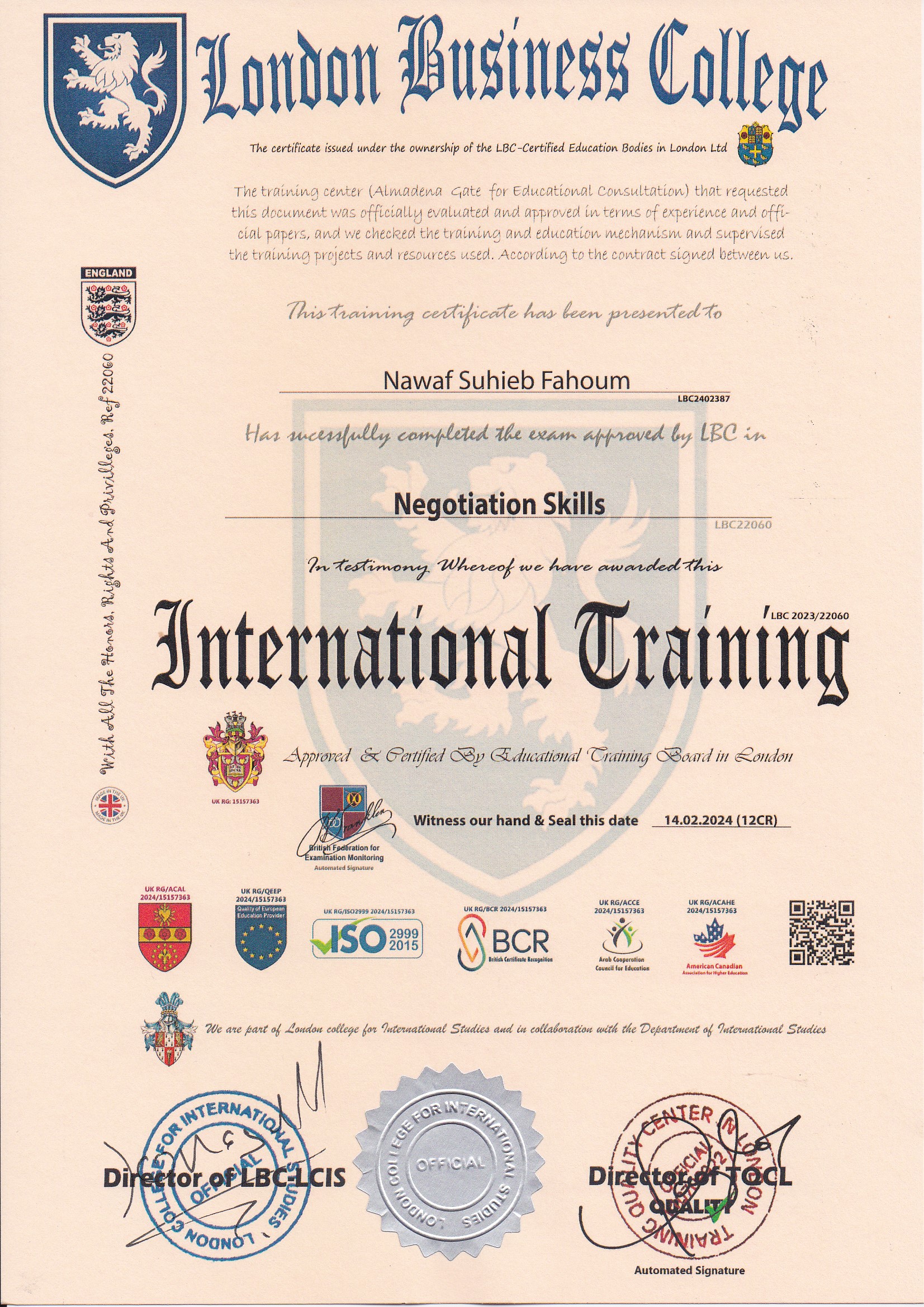 Approved by (Training Quality Center in London)