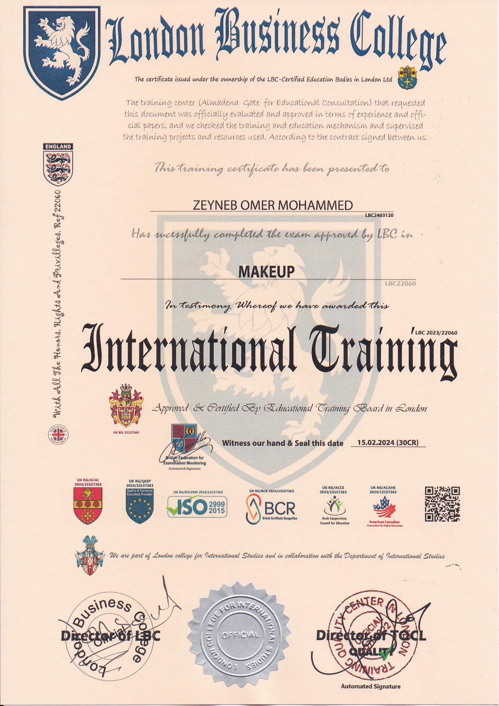 Approved by (Training Quality Center in London)
