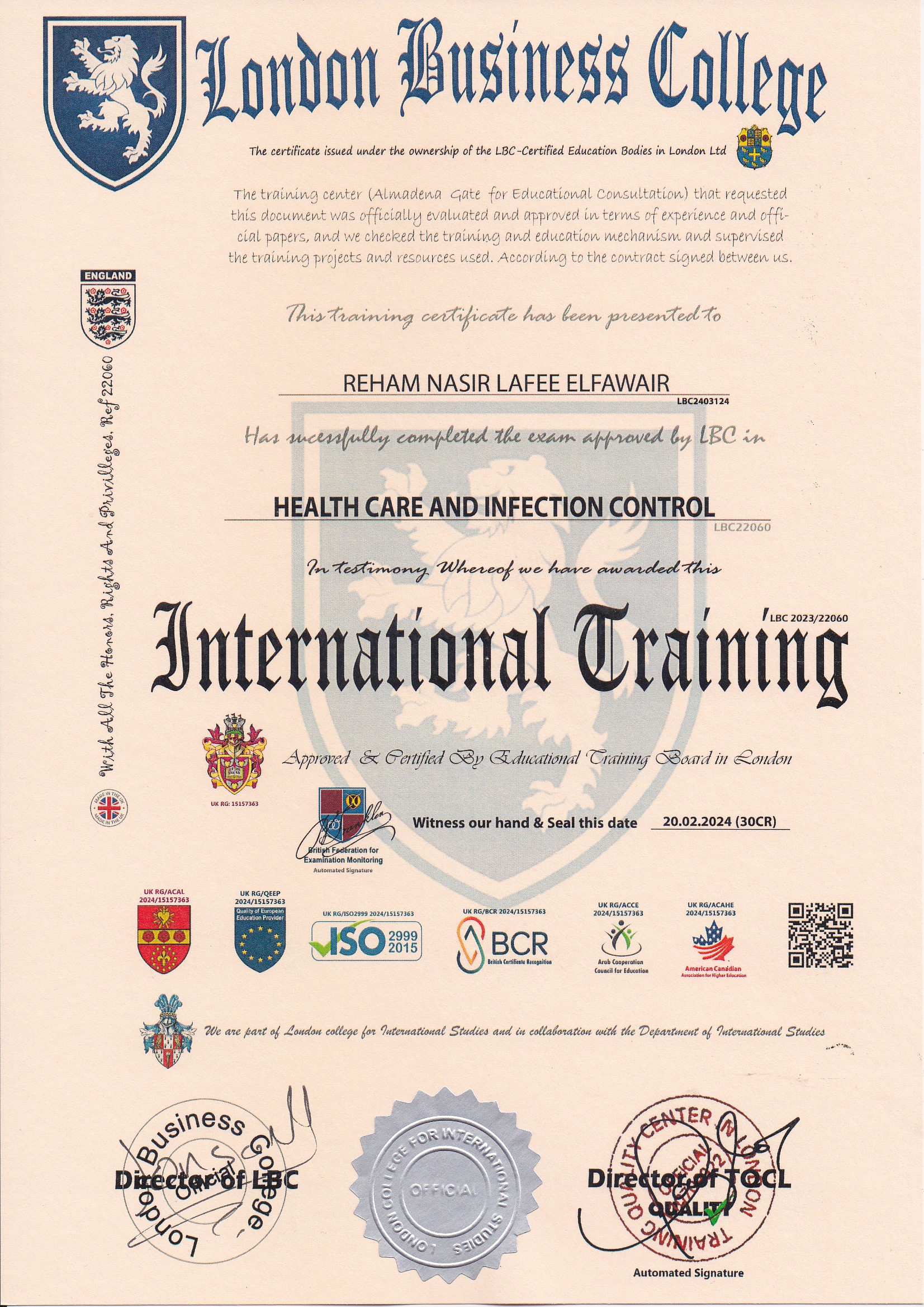 Hadel AL Manaseer Center/HEALTH CARE AND INFECTION CONTROL