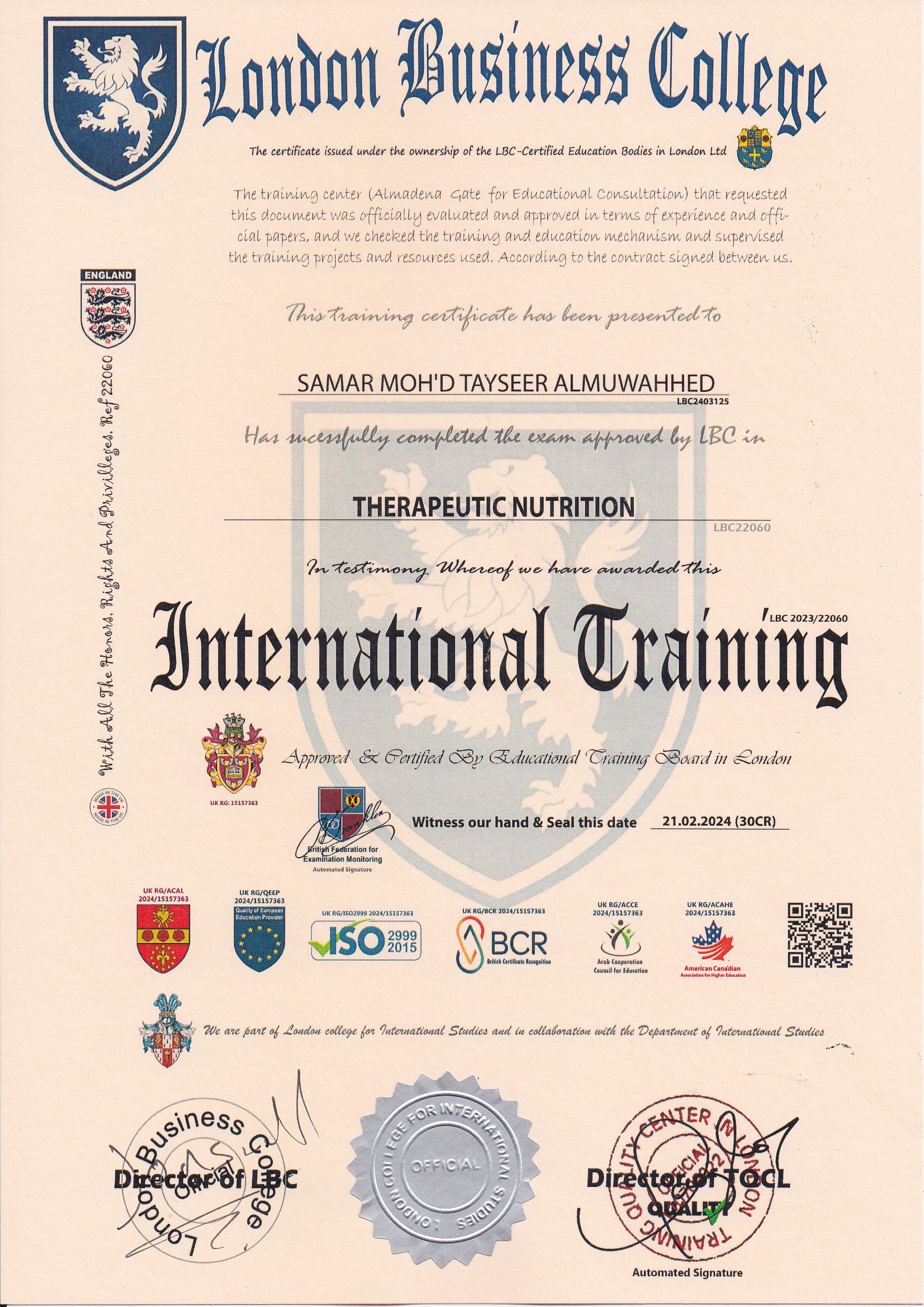 Hadel AL Manaseer Center/THERAPEUTIC NUTRITION