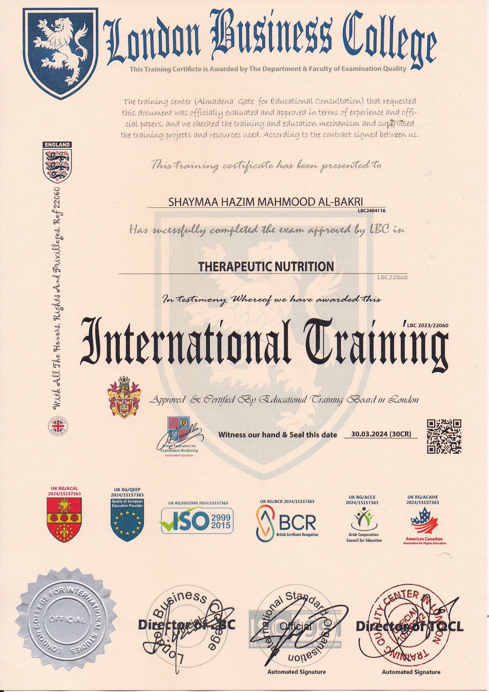 Hadel AL Manaseer Center/THERAPEUTIC NUTRITION