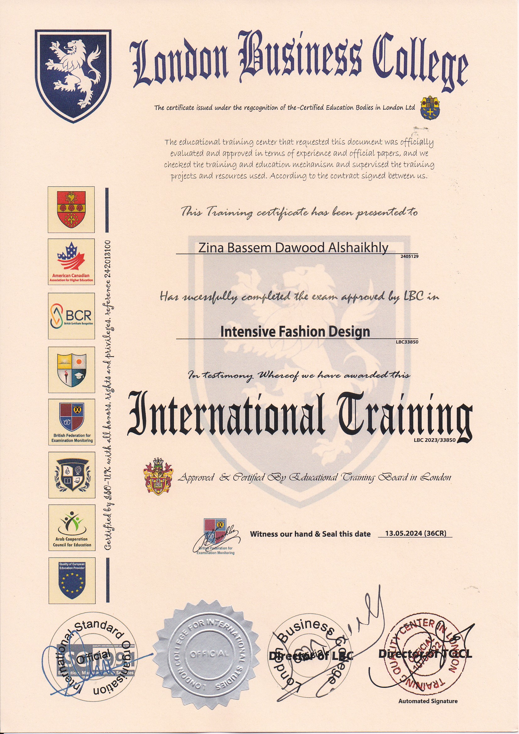 Approved by (Training Quality Center in London)