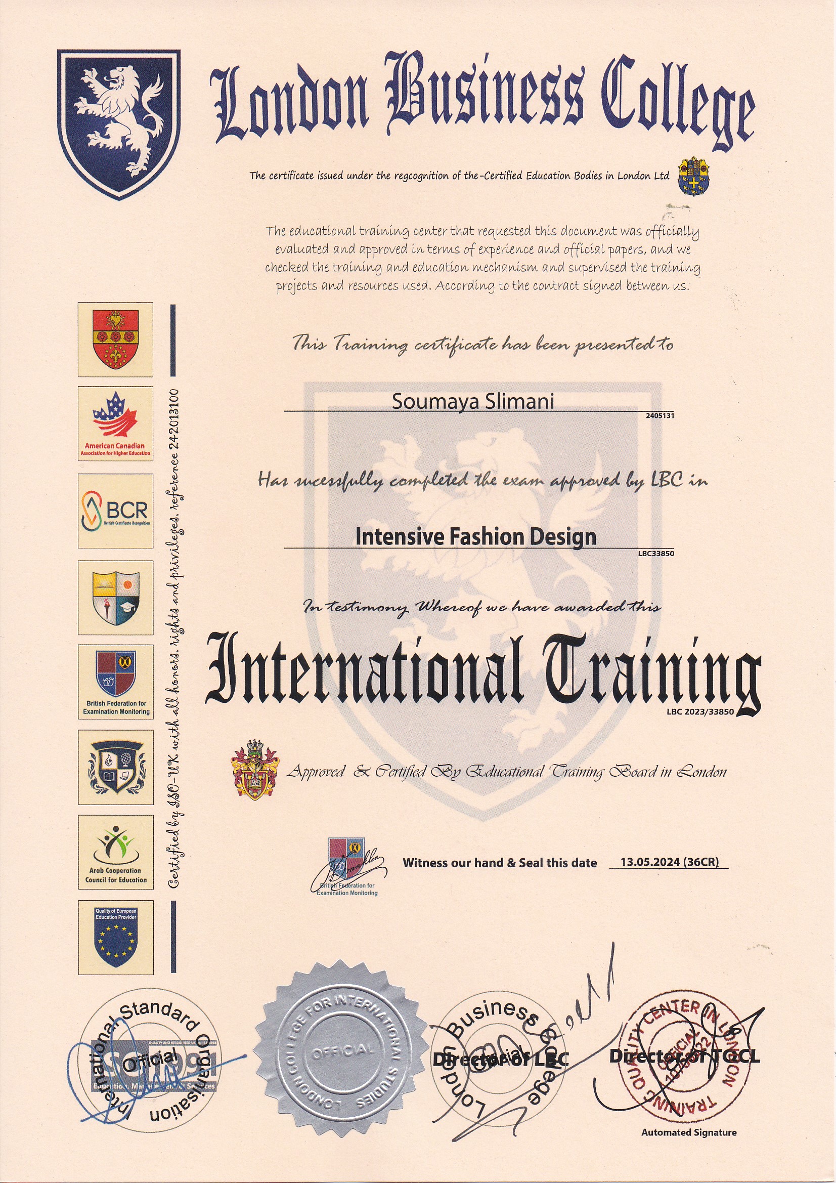Approved by (Training Quality Center in London)