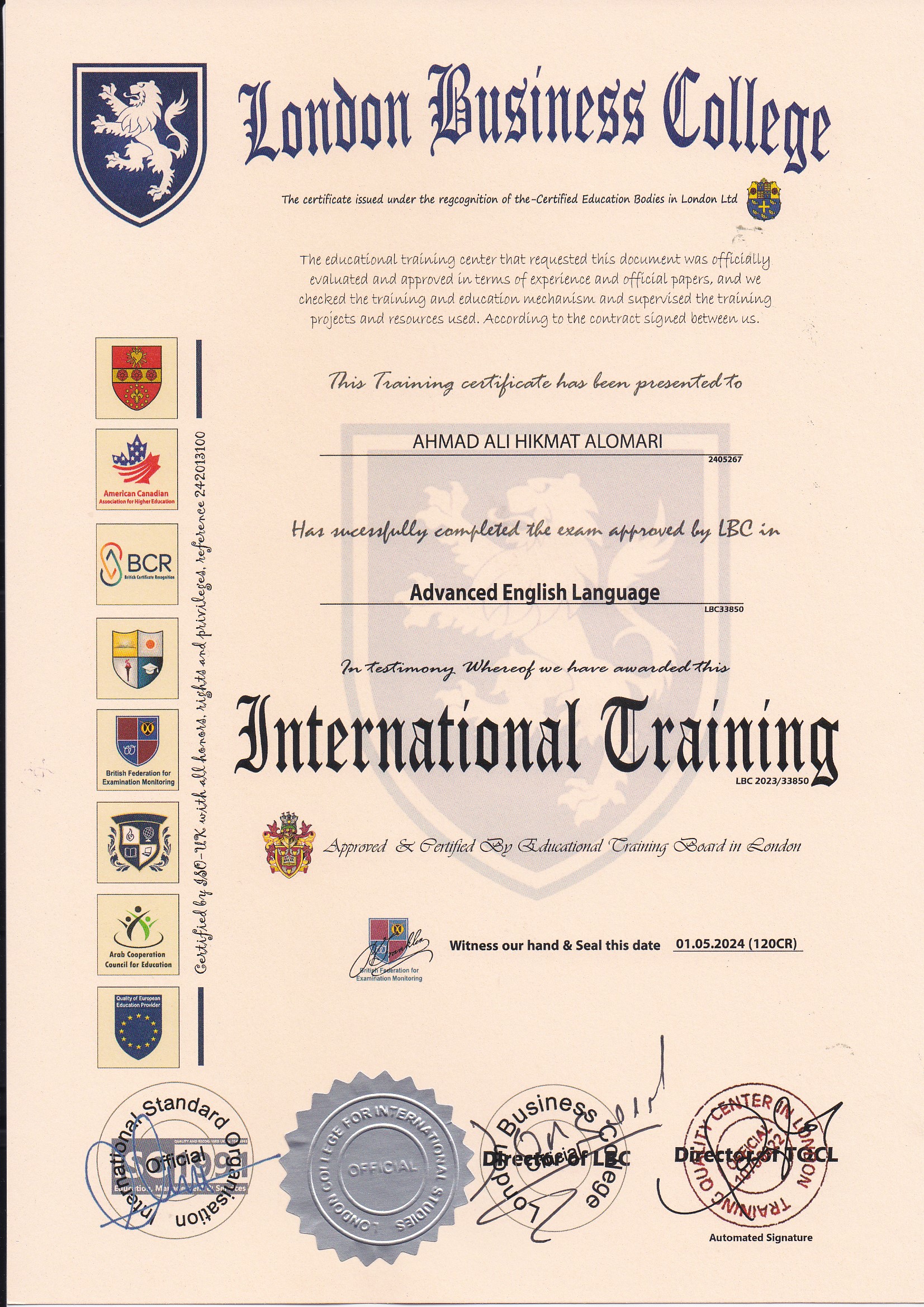 Approved by (Training Quality Center in London)