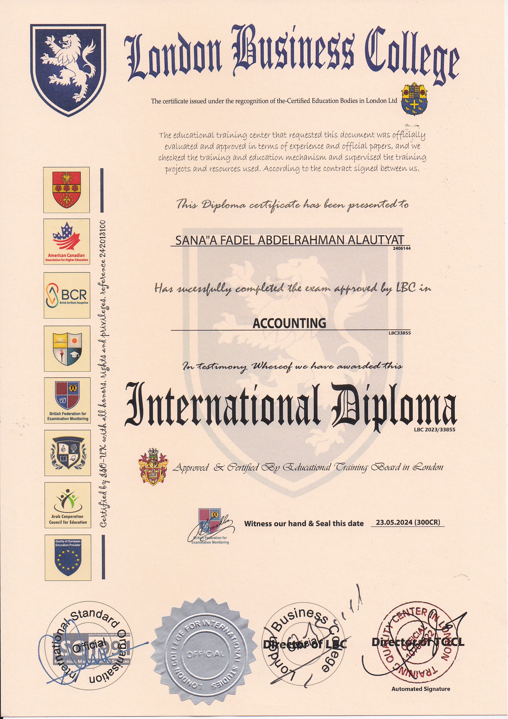 Approved by (Arab British Federation for Monitoring Educational Exams)