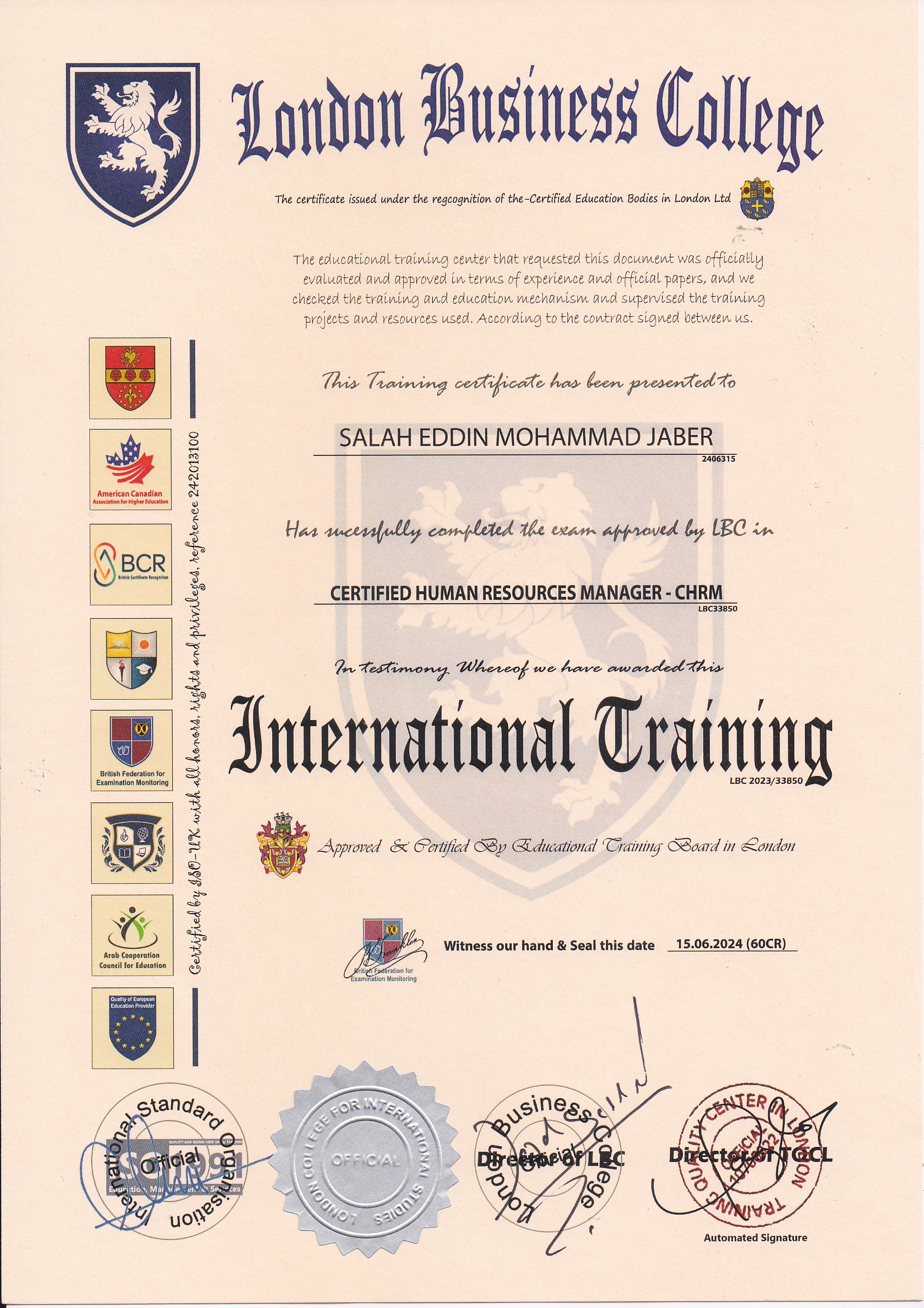 Osama Ayash/CERTIFIED HUMAN RESOURCES MANAGER (CHRM)