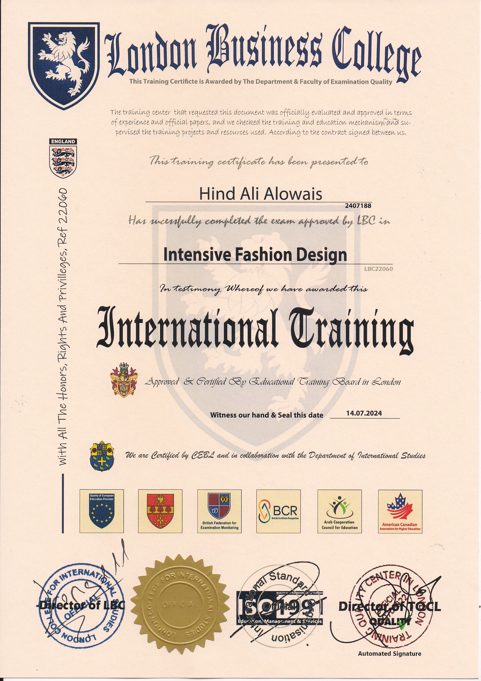 Approved by (Training Quality Center in London)
