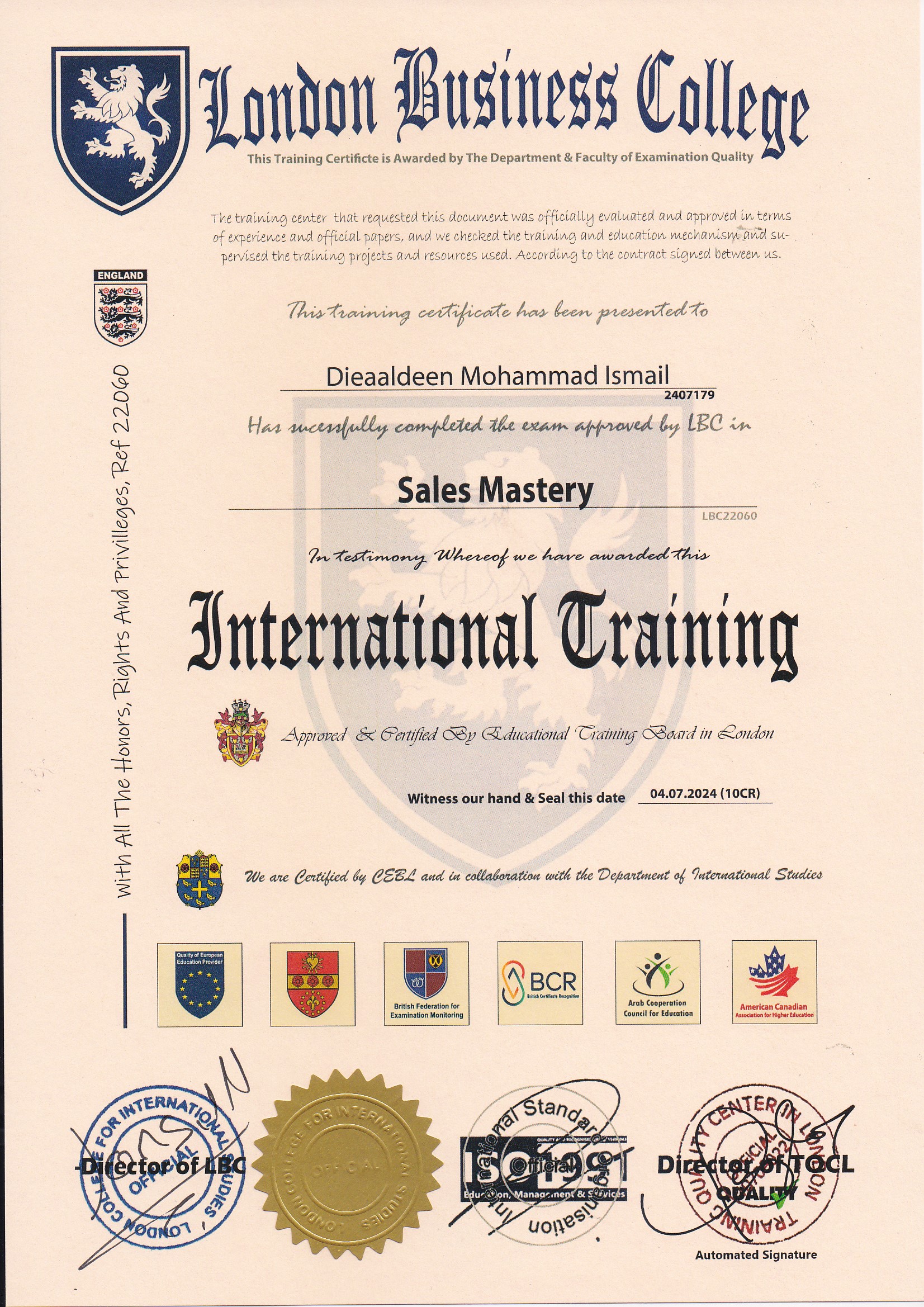 Approved by (Training Quality Center in London)