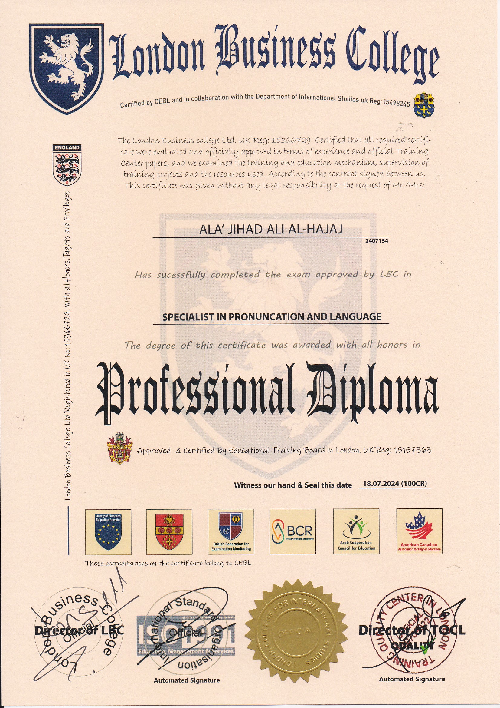 Al Kamal/ SPECIALIST IN PRONUNCATION AND LANGUAGE