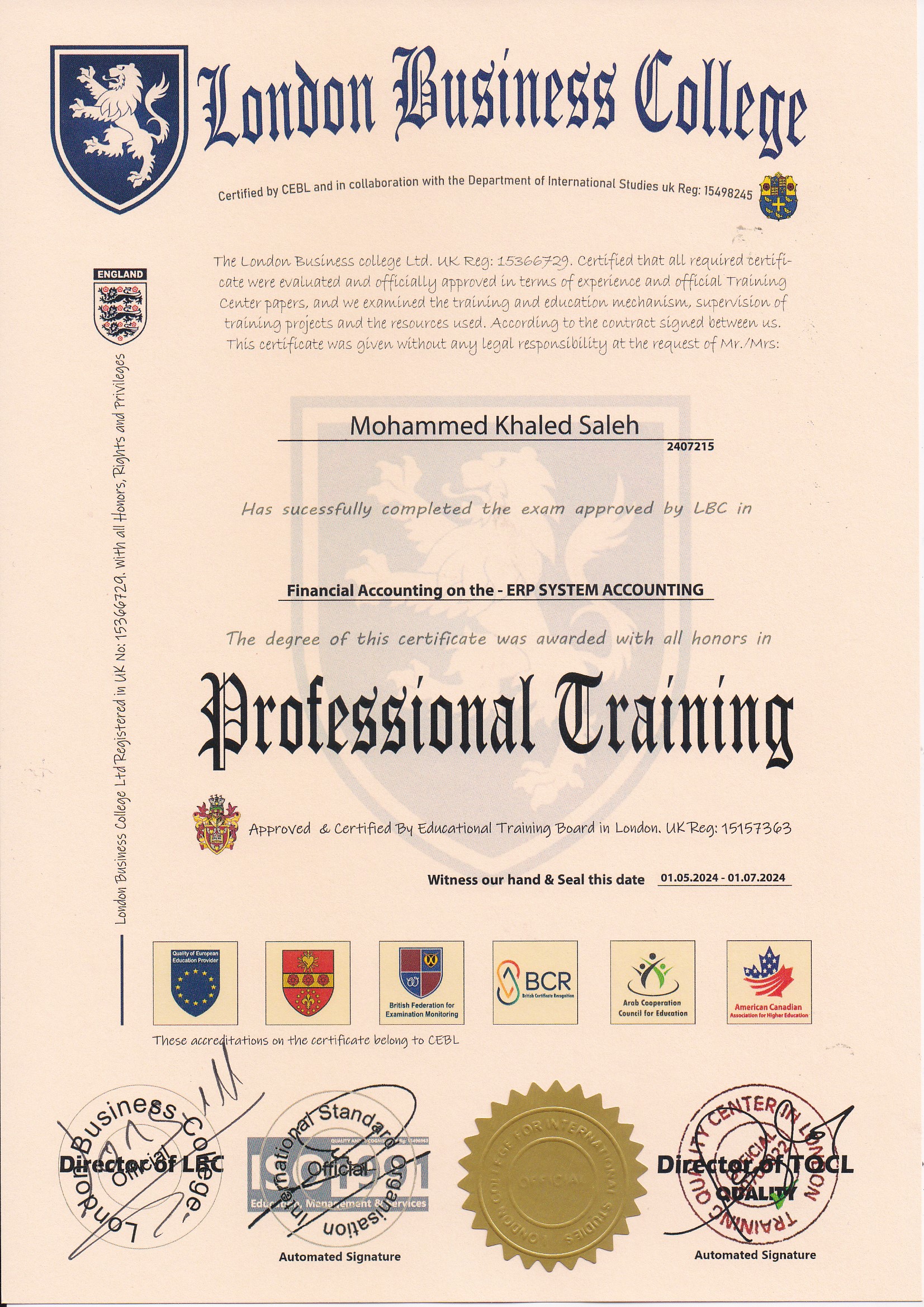Mohammad Zahran/Financial Accounting on the ( ERP SYSTEM ACCOUNTING )