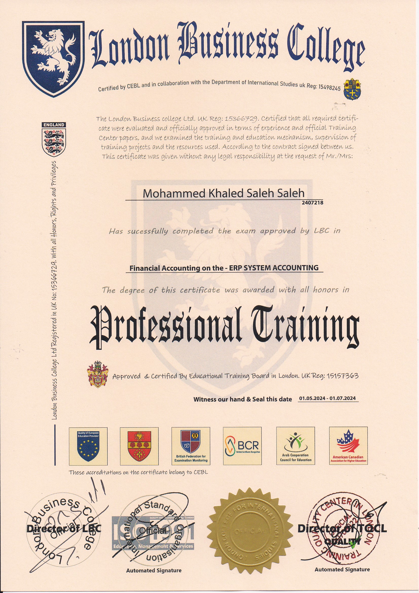 Mohammad Zahran/Financial Accounting on the ( ERP SYSTEM ACCOUNTING )