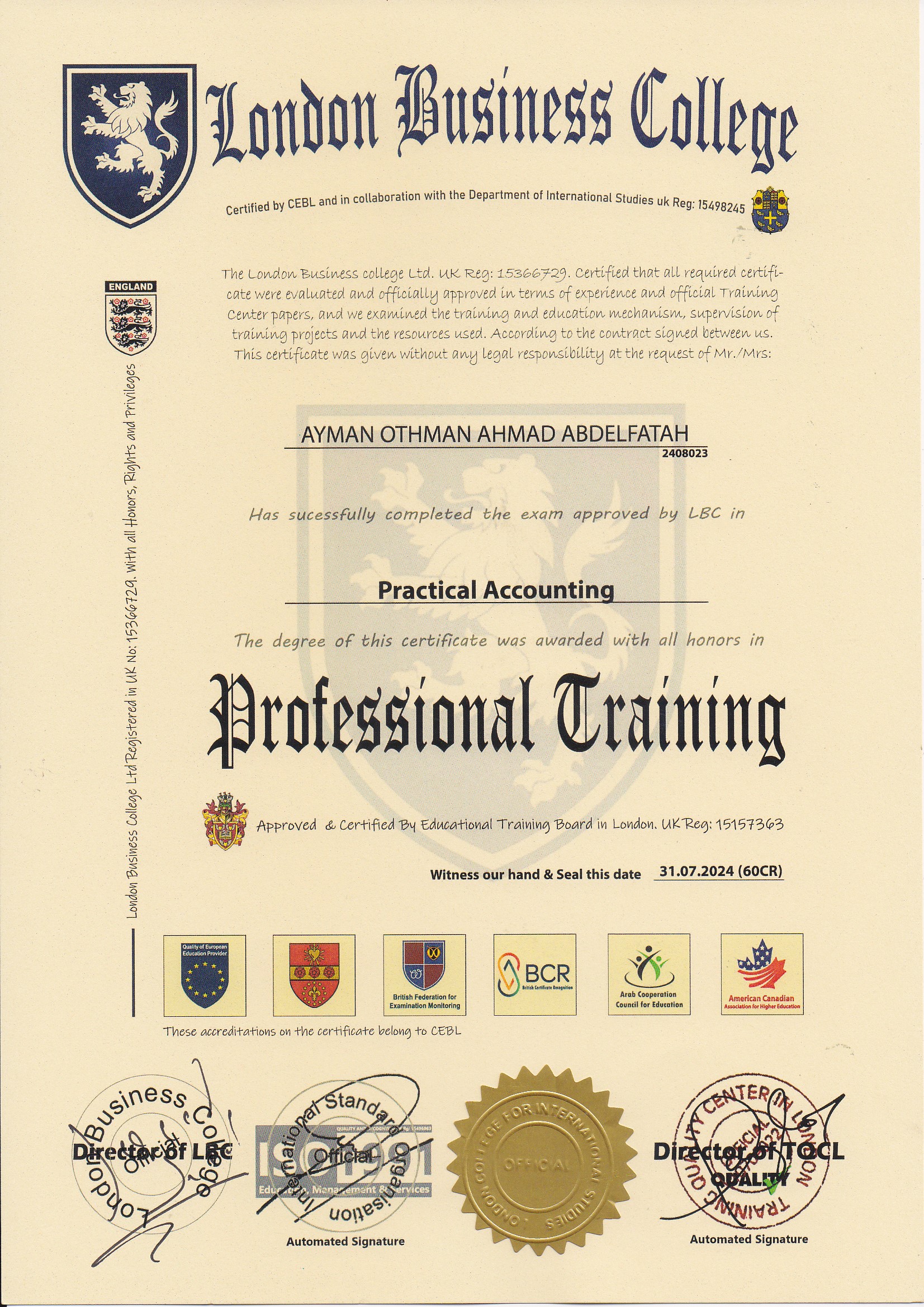 Approved by (Training Quality Center in London)