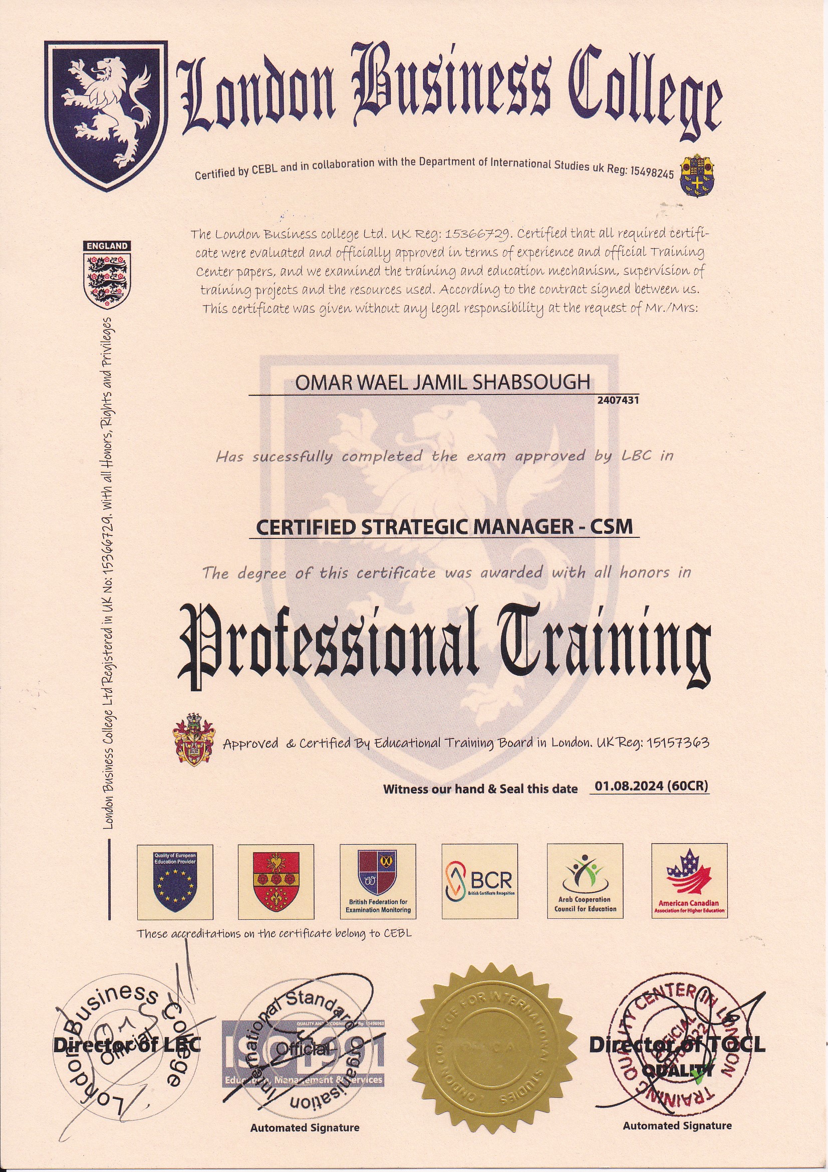 Osama Ayash/CERTIFIED STRATEGIC MANAGER(CSM)