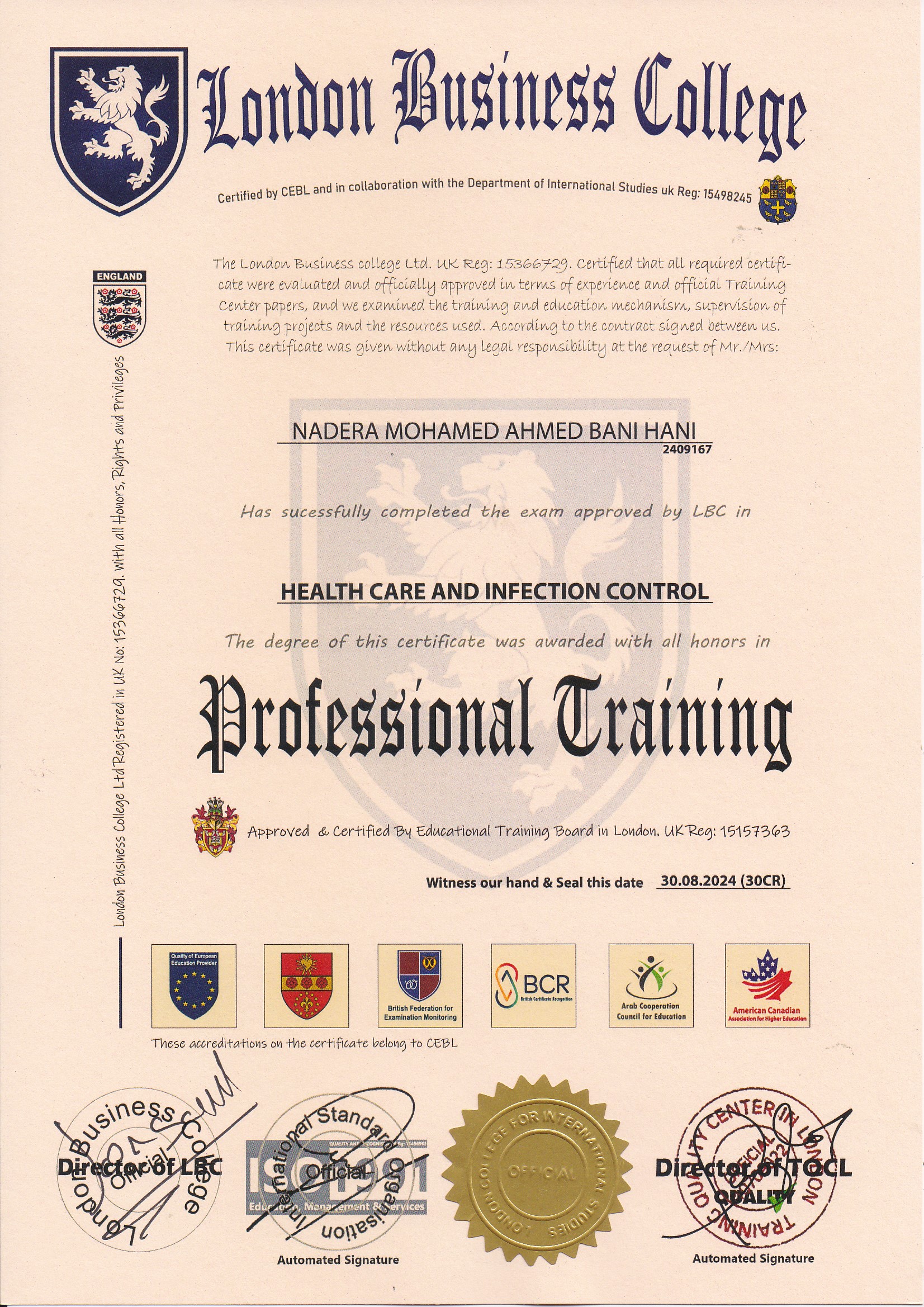 Hadel AL Manaseer Center/HEALTH CARE AND INFECTION CONTROL