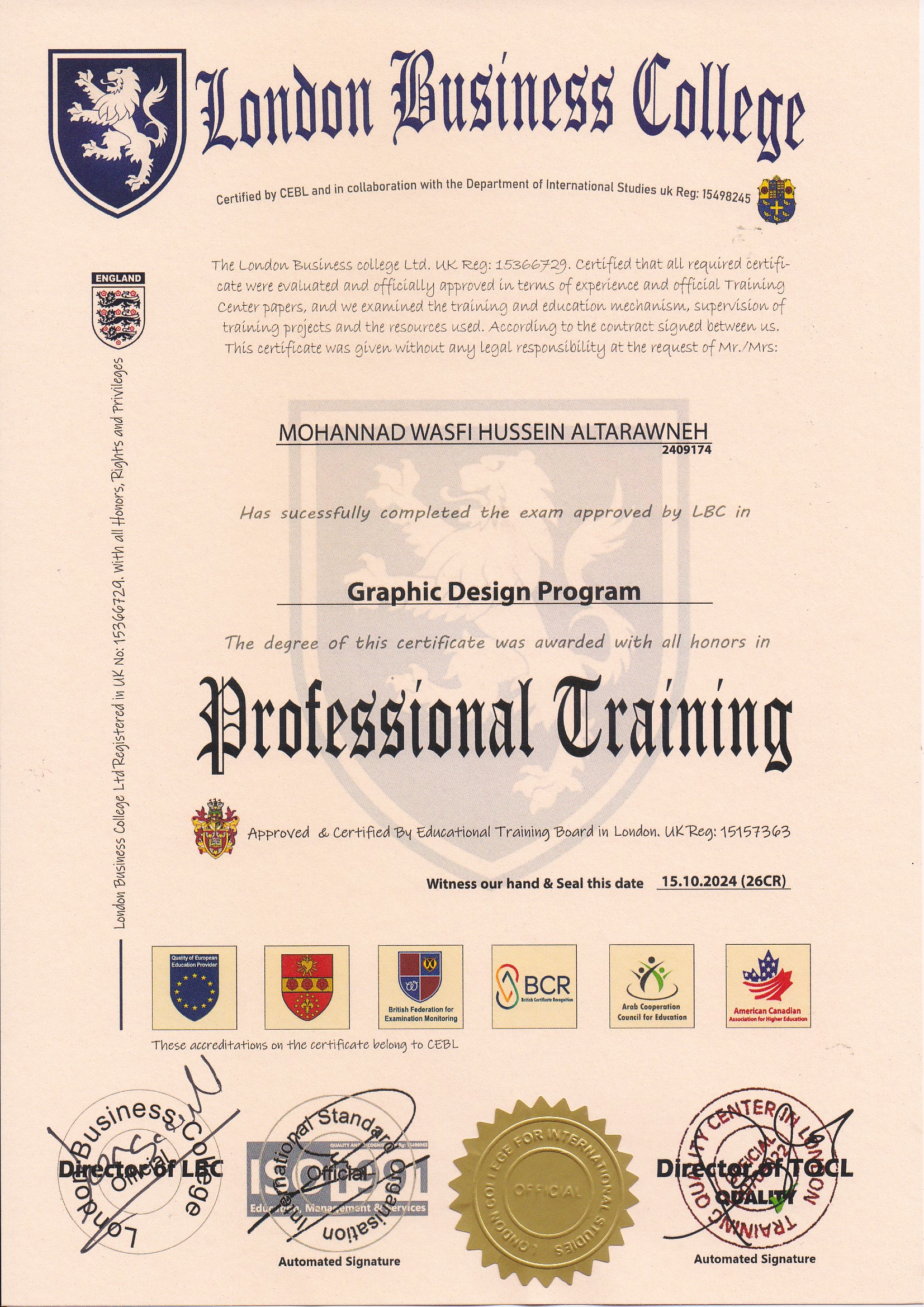 Approved by (Training Quality Center in London)