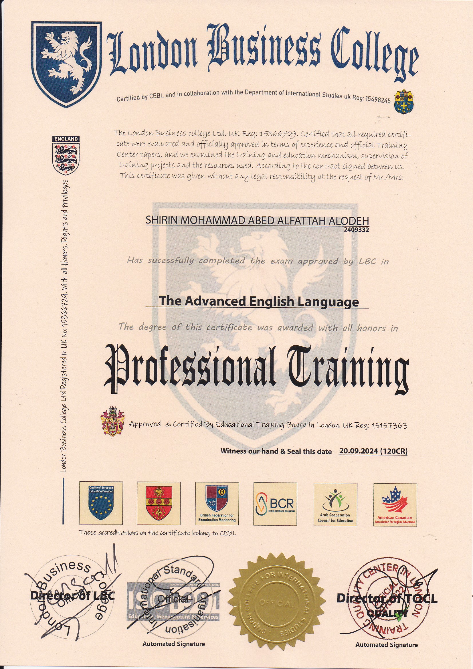 Approved by (Training Quality Center in London)
