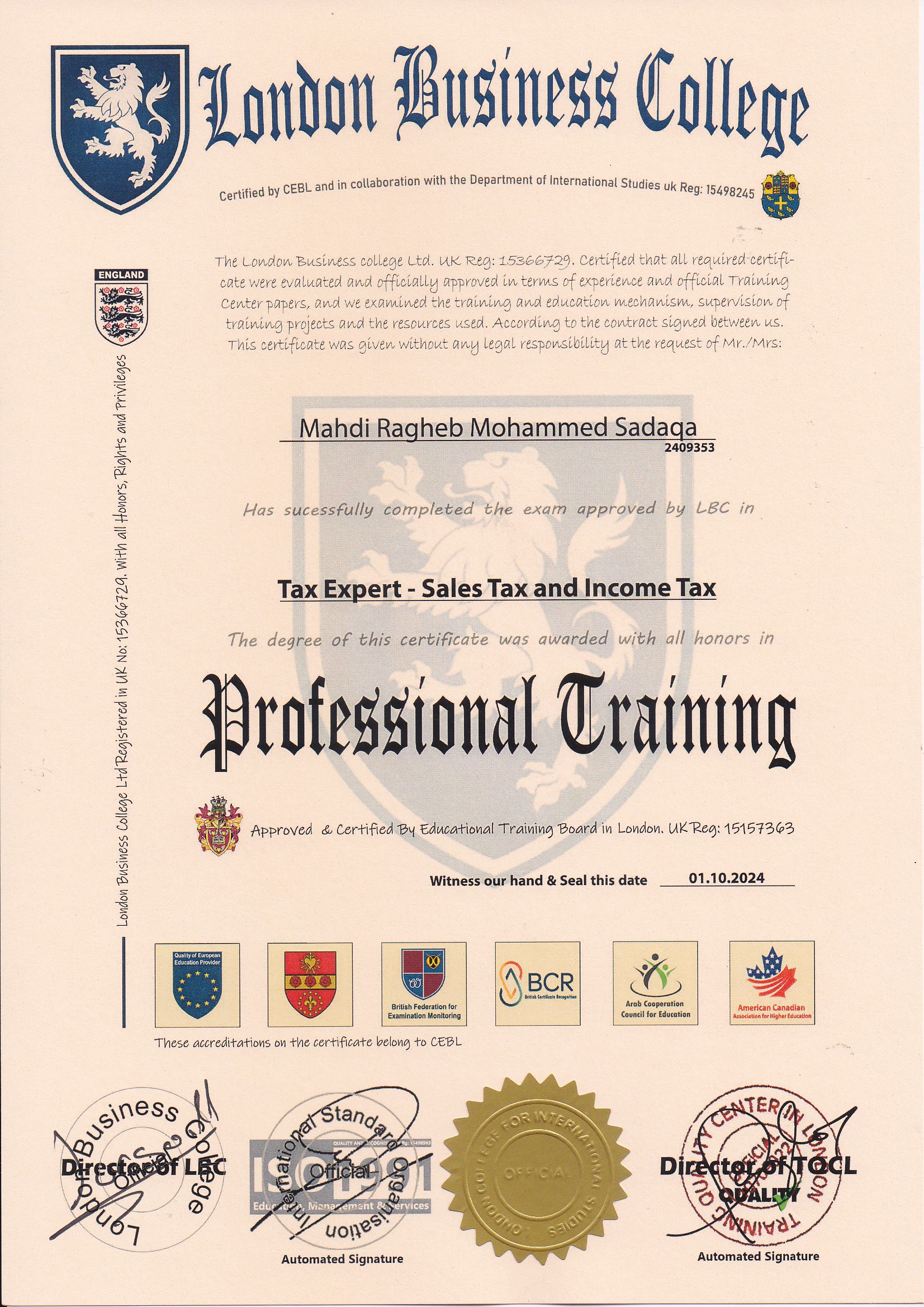 Mohammad Zahran/Tax expert course (sales tax and income tax)