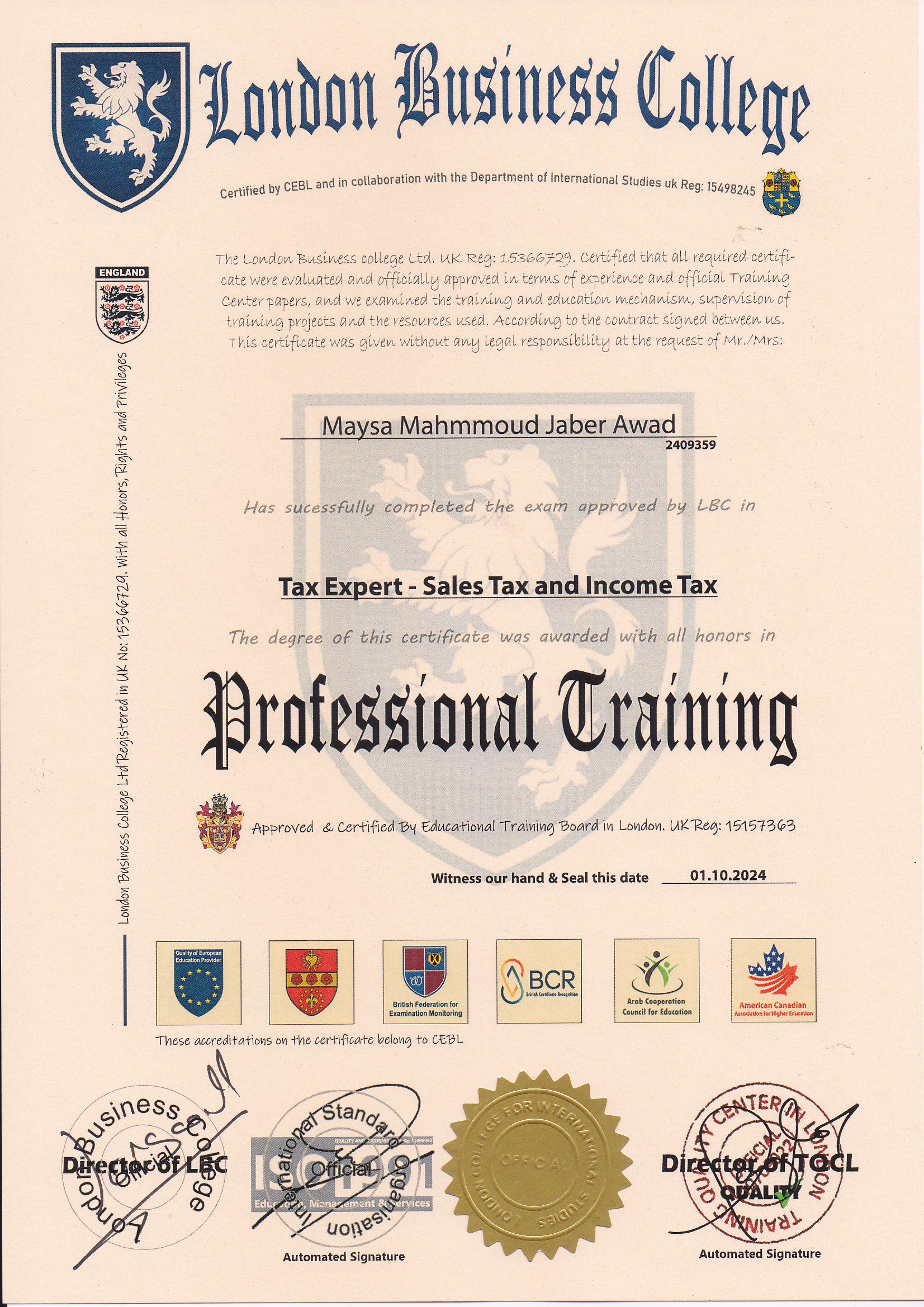 Mohammad Zahran/Tax expert course (sales tax and income tax)