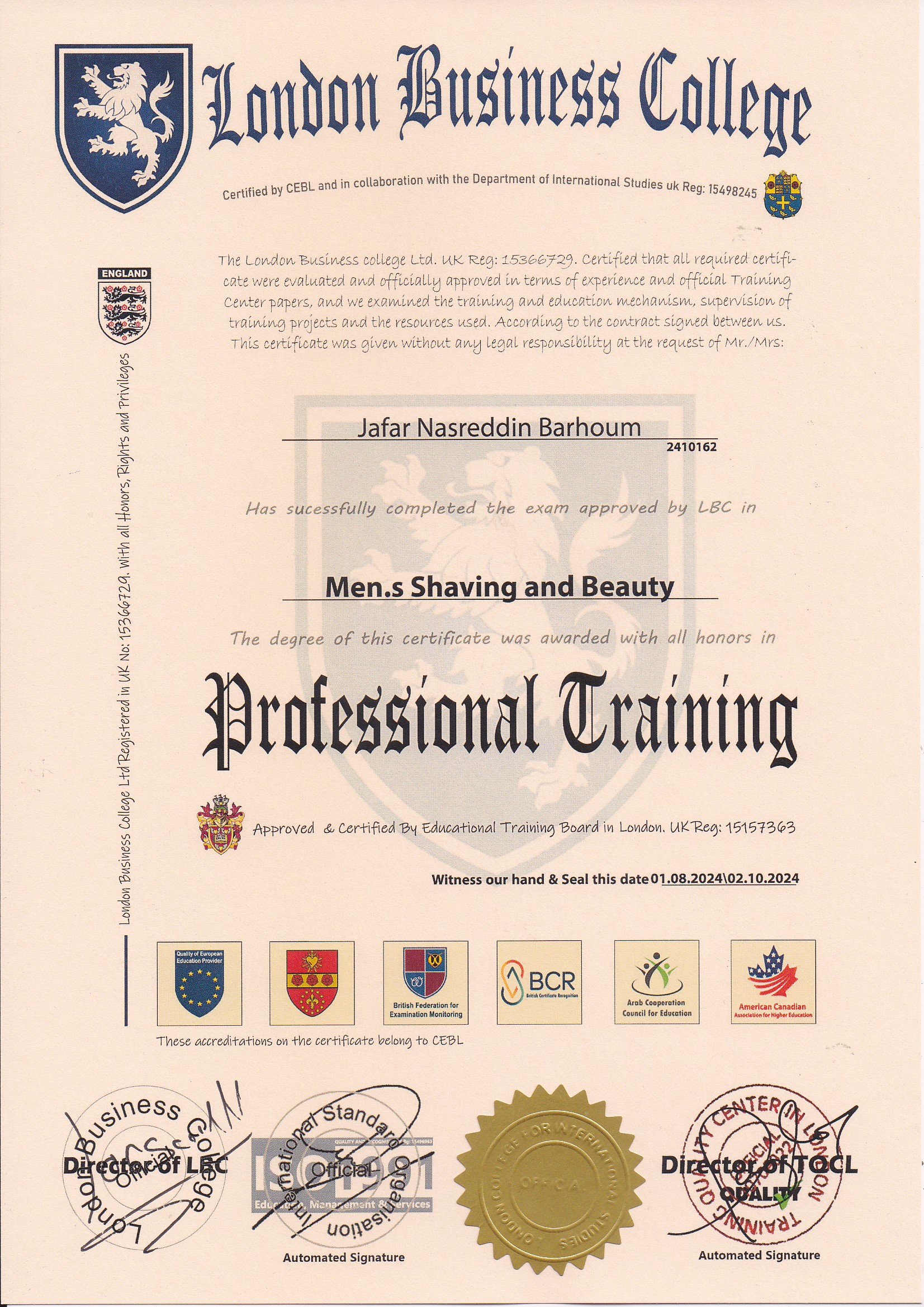 Approved by (Training Quality Center in London)