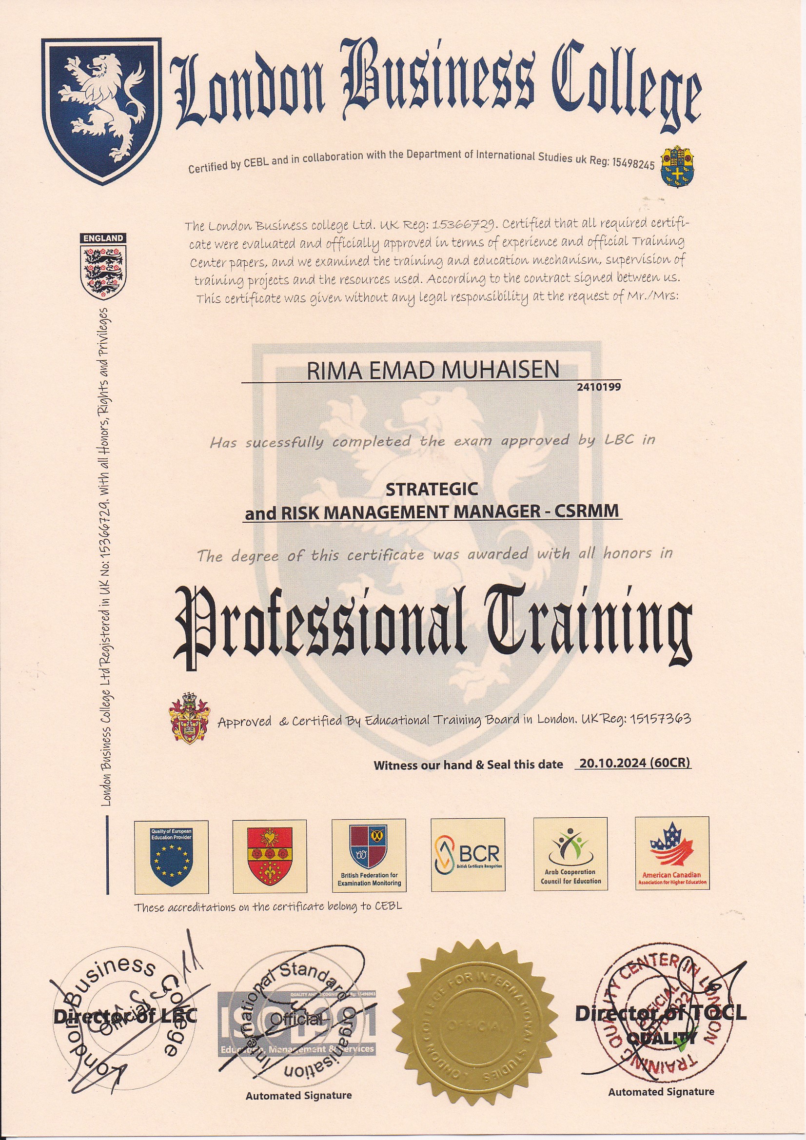 Osama Ayash/CERTIFIED STRATEGIC AND RISK MANAGEMENT MANAGER (CSRMM)