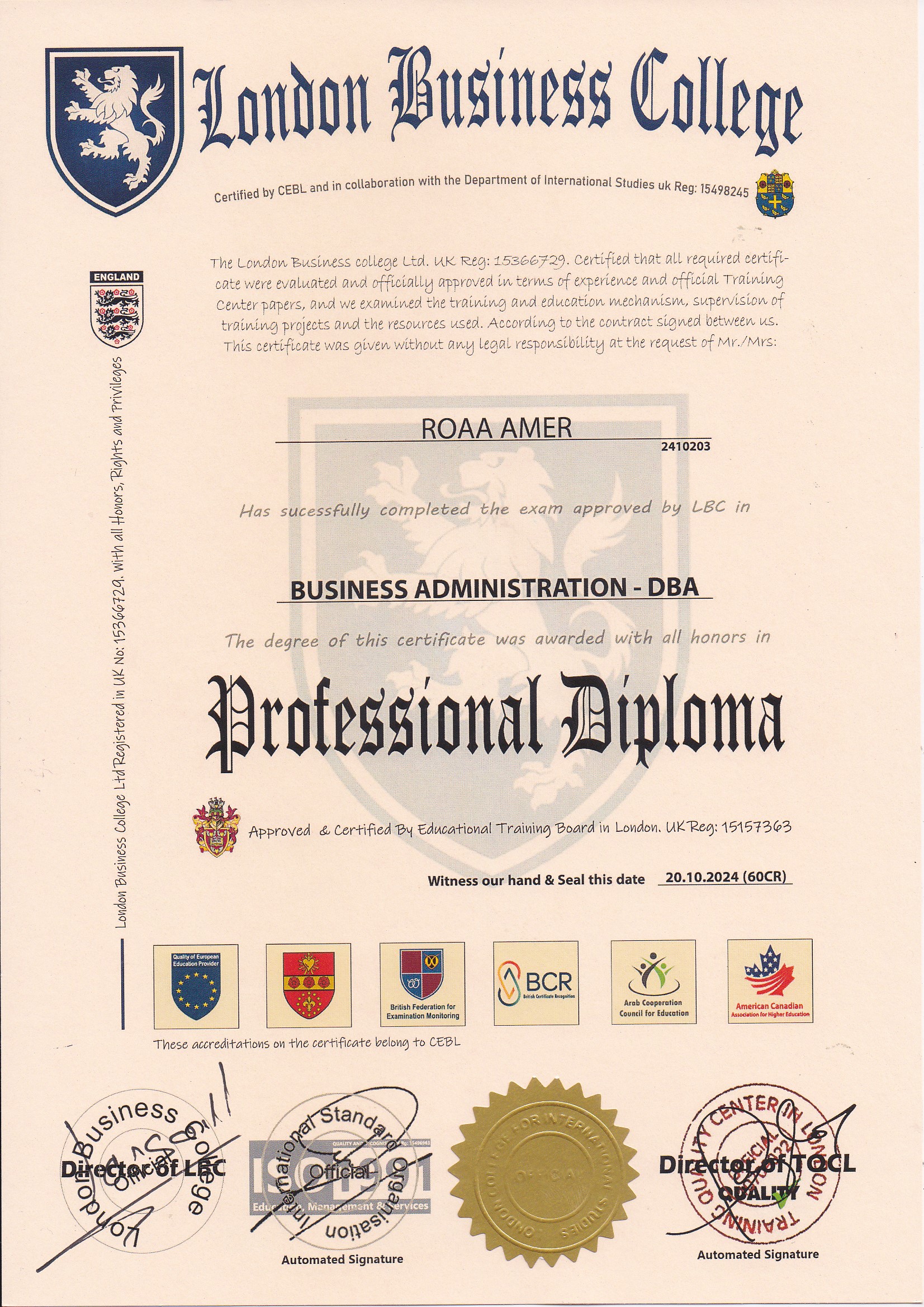 Osama Ayash/DIPLOMA IN BUSINESS ADMINISTRATION (DBA