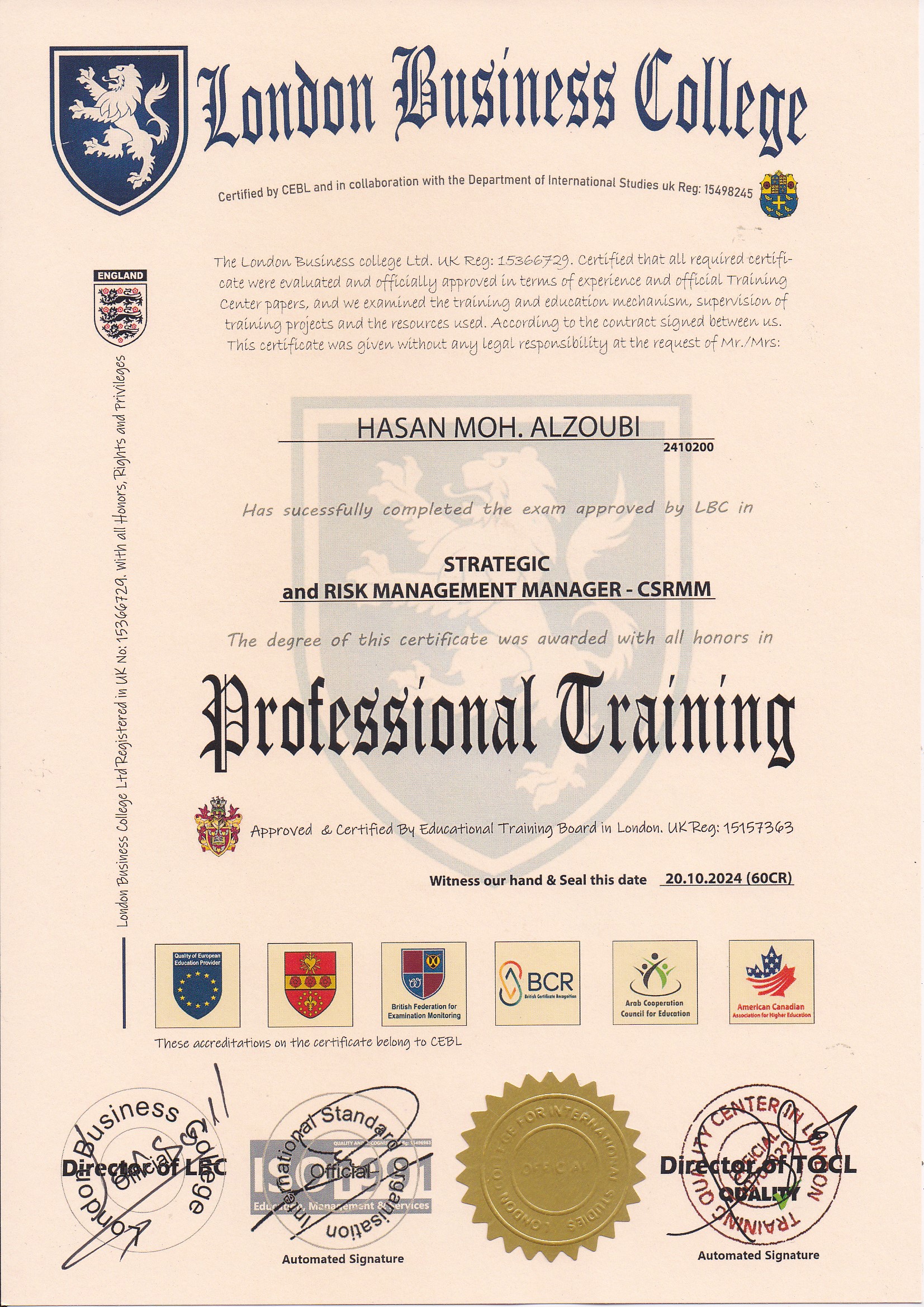 Osama Ayash/CERTIFIED STRATEGIC AND RISK MANAGEMENT MANAGER (CSRMM)