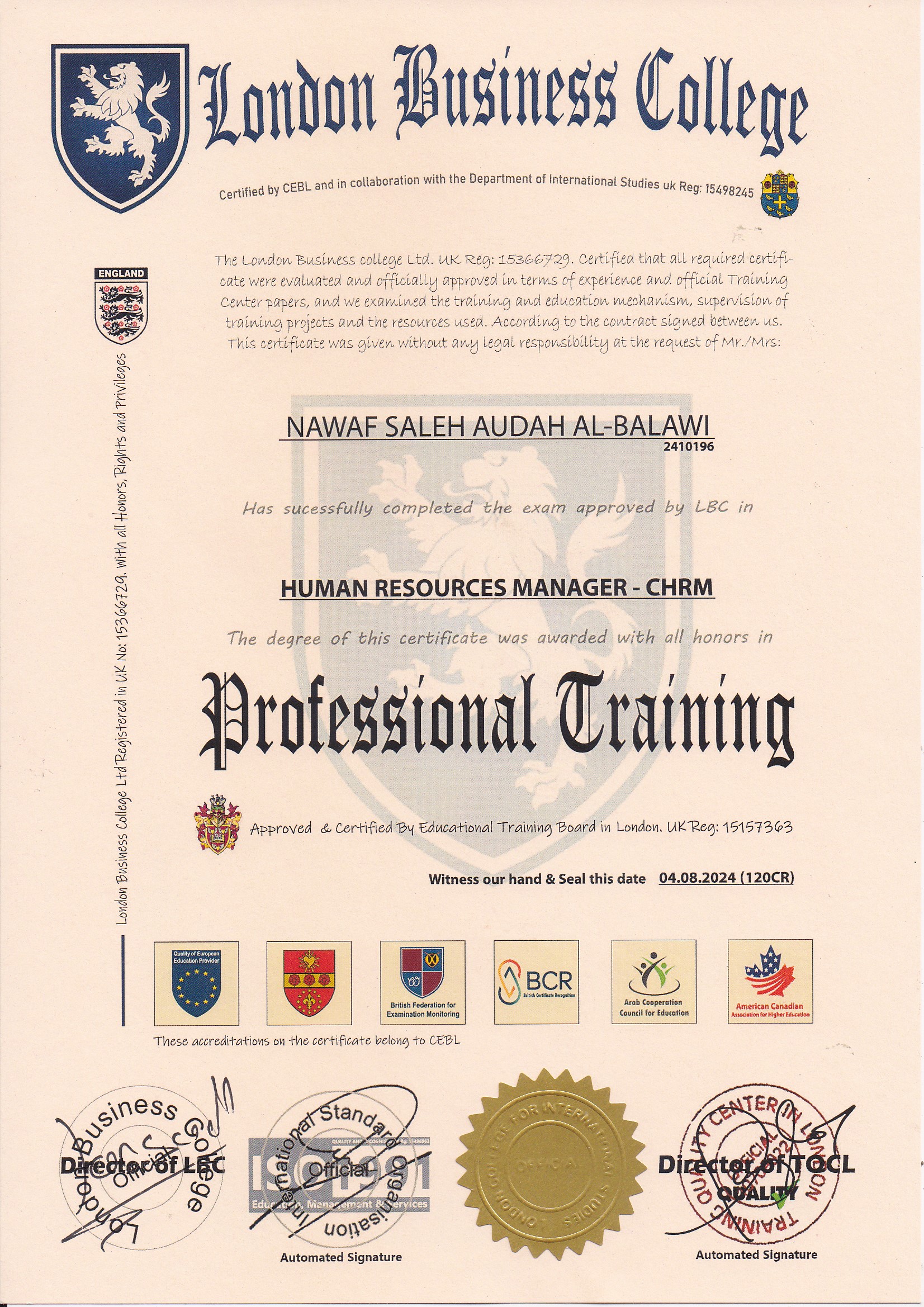 Osama Ayash/CERTIFIED HUMAN RESOURCES MANAGER (CHRM)
