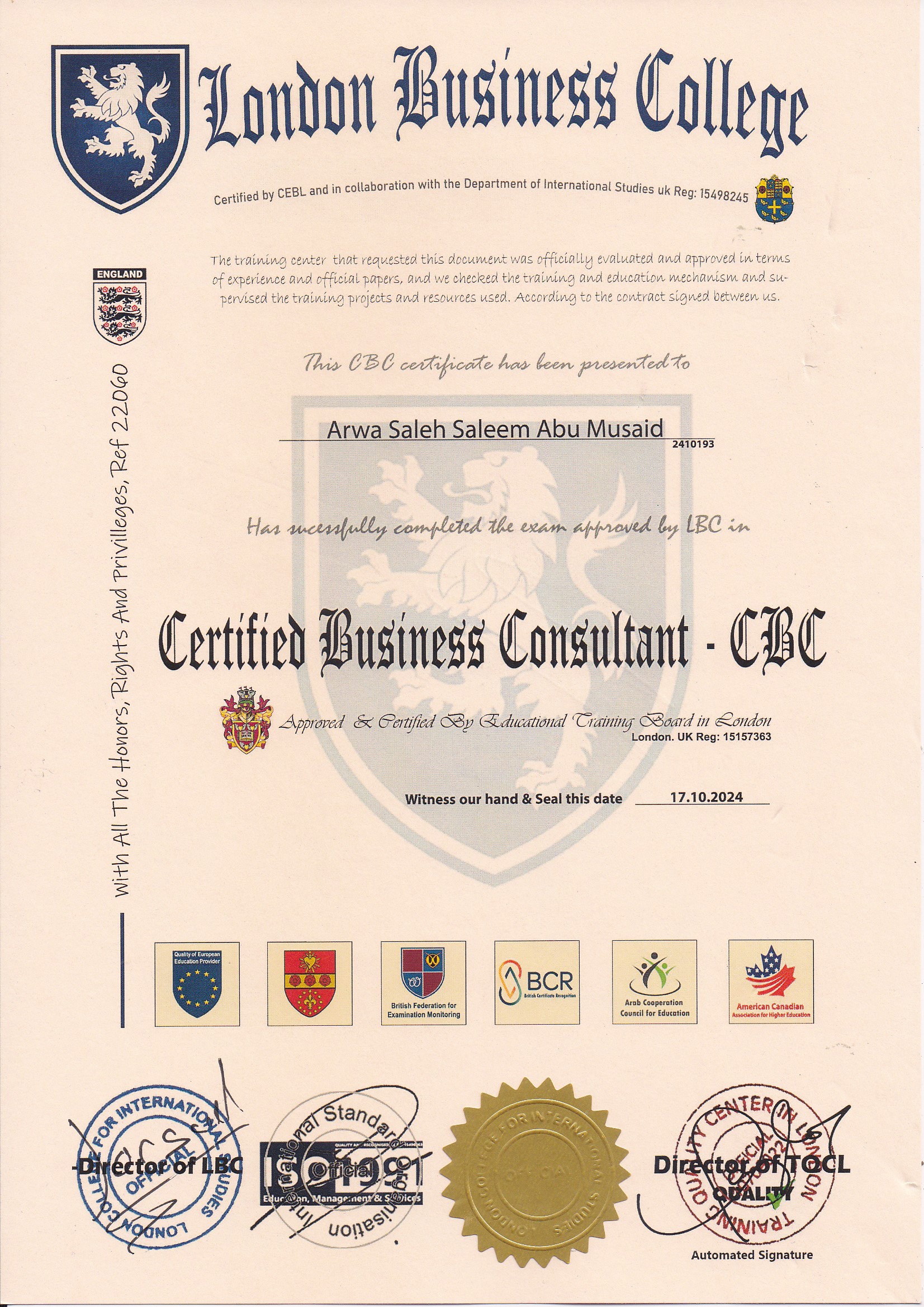 Approved by (Training Quality Center in London)