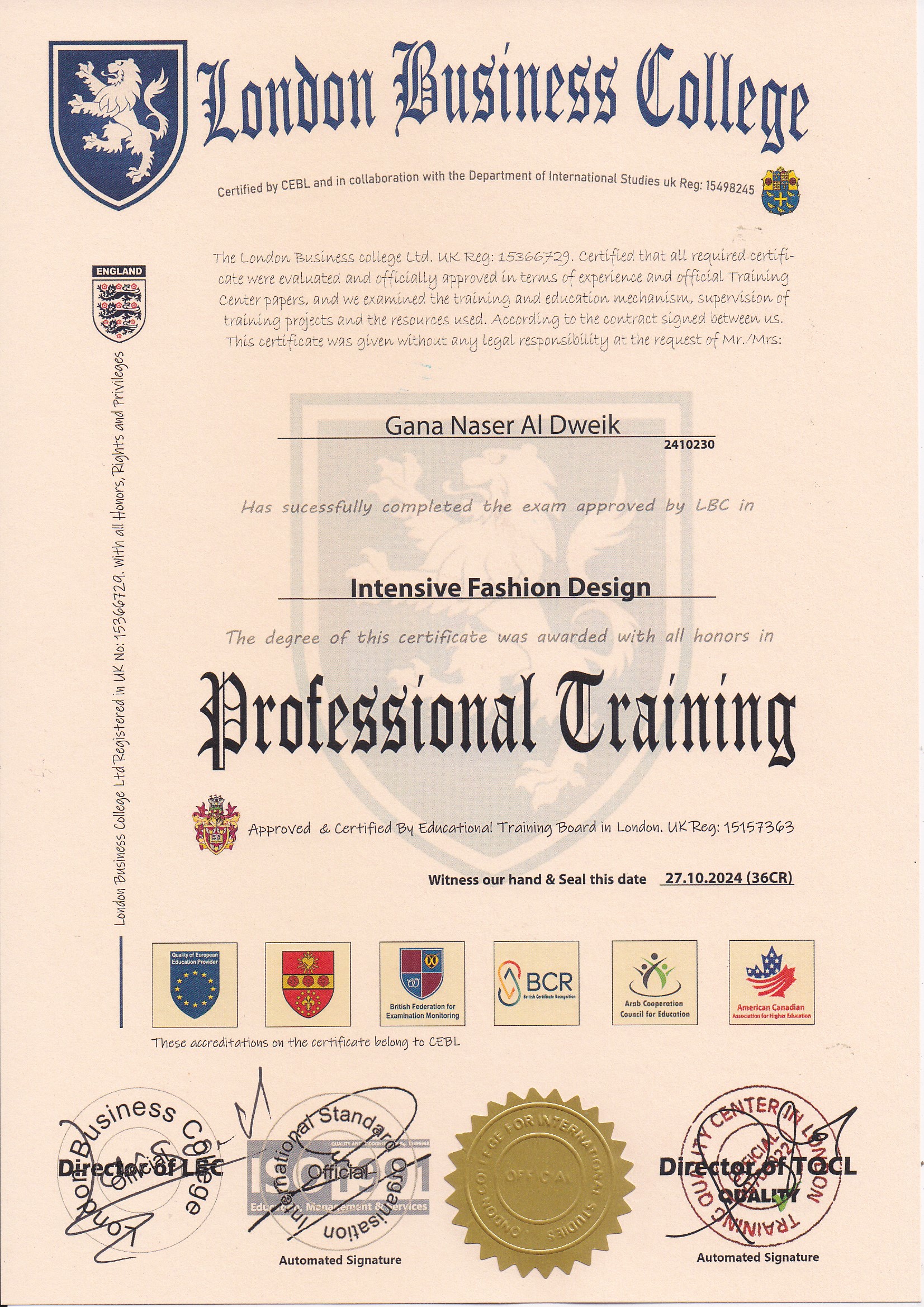 Approved by (Training Quality Center in London)
