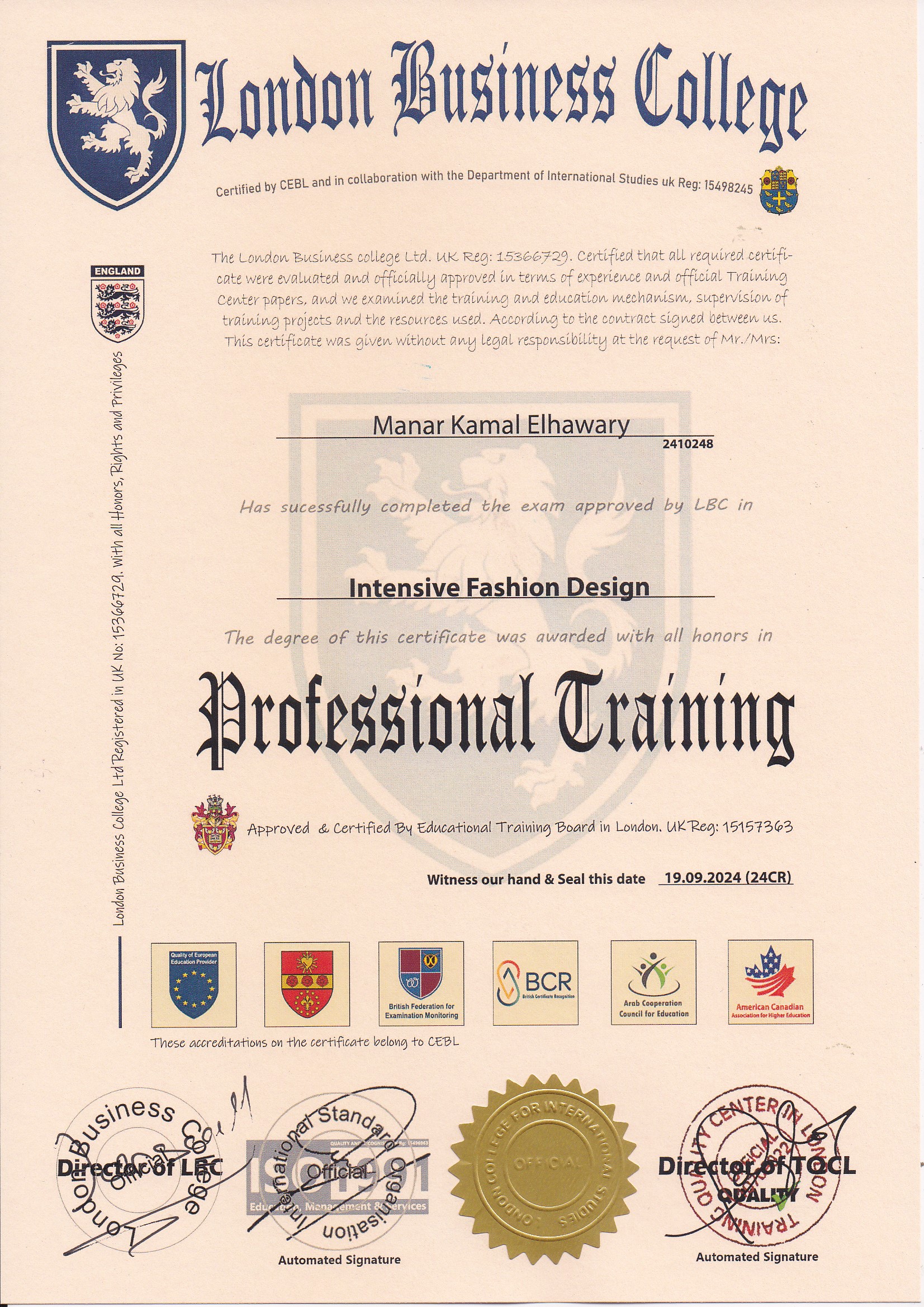 Approved by (Training Quality Center in London)