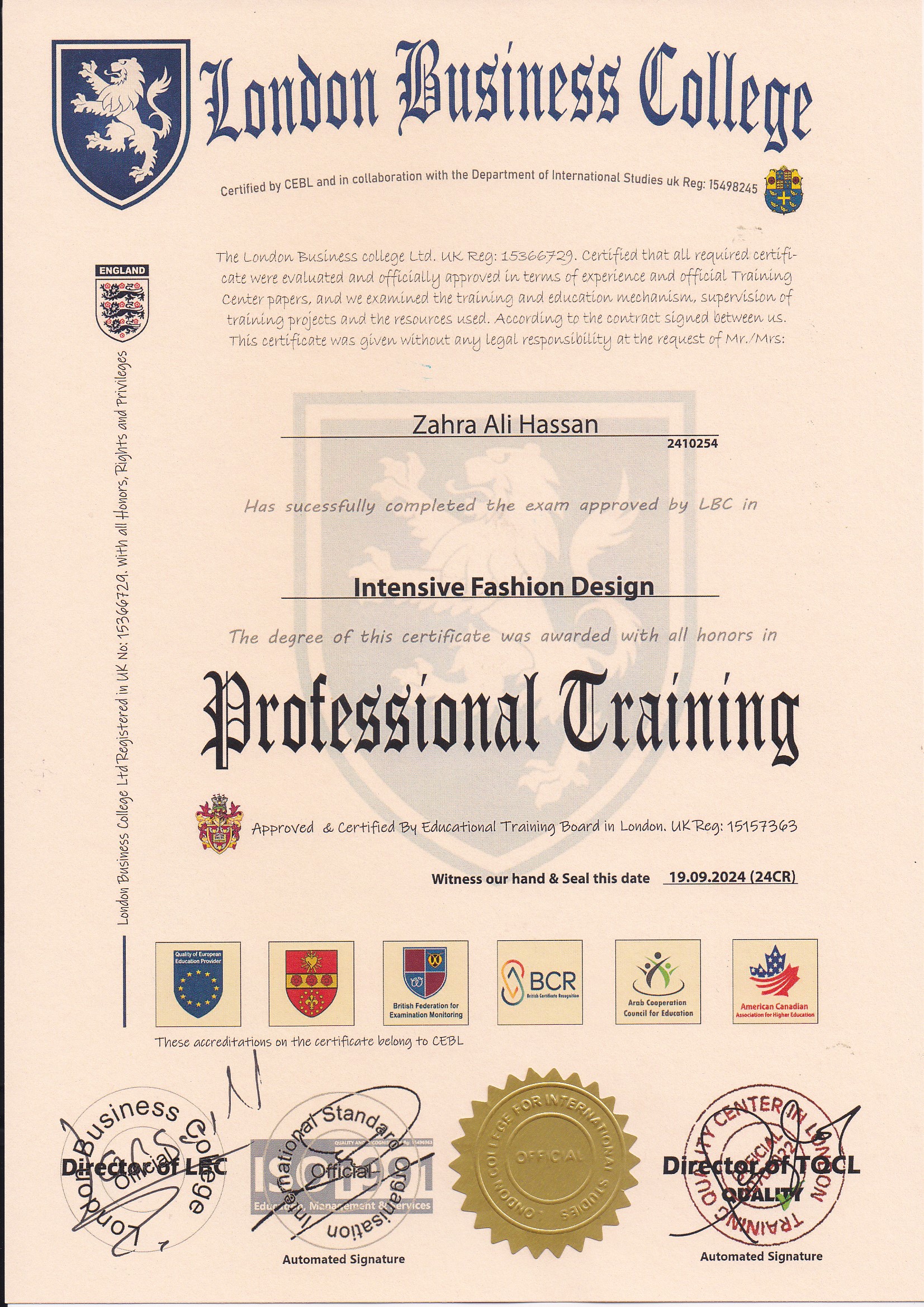 Approved by (Training Quality Center in London)