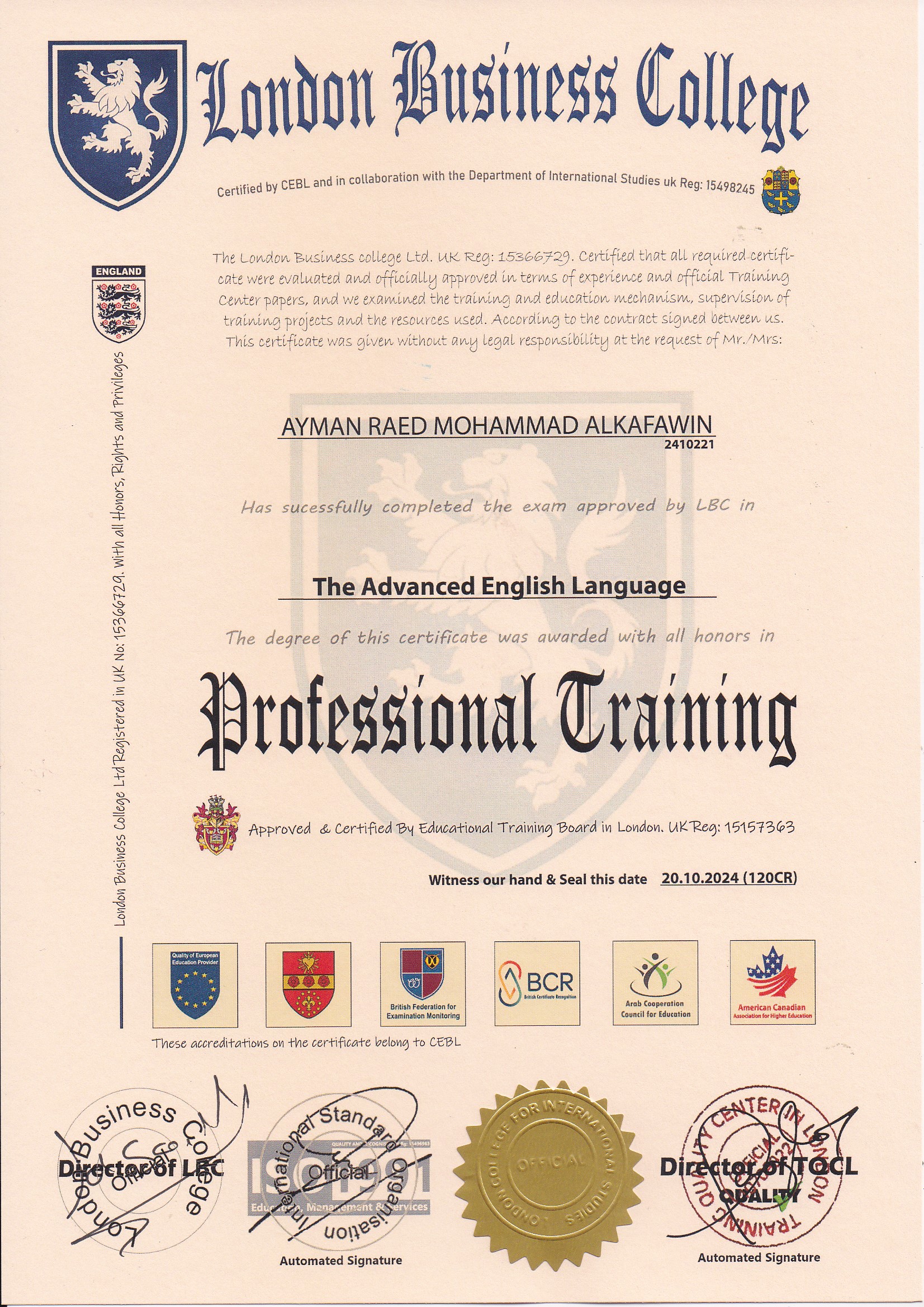 Approved by (Training Quality Center in London)