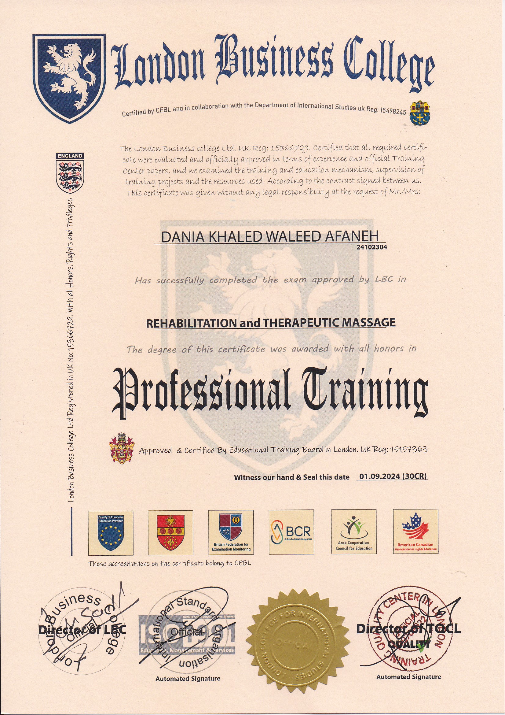 Approved by (Training Quality Center in London)