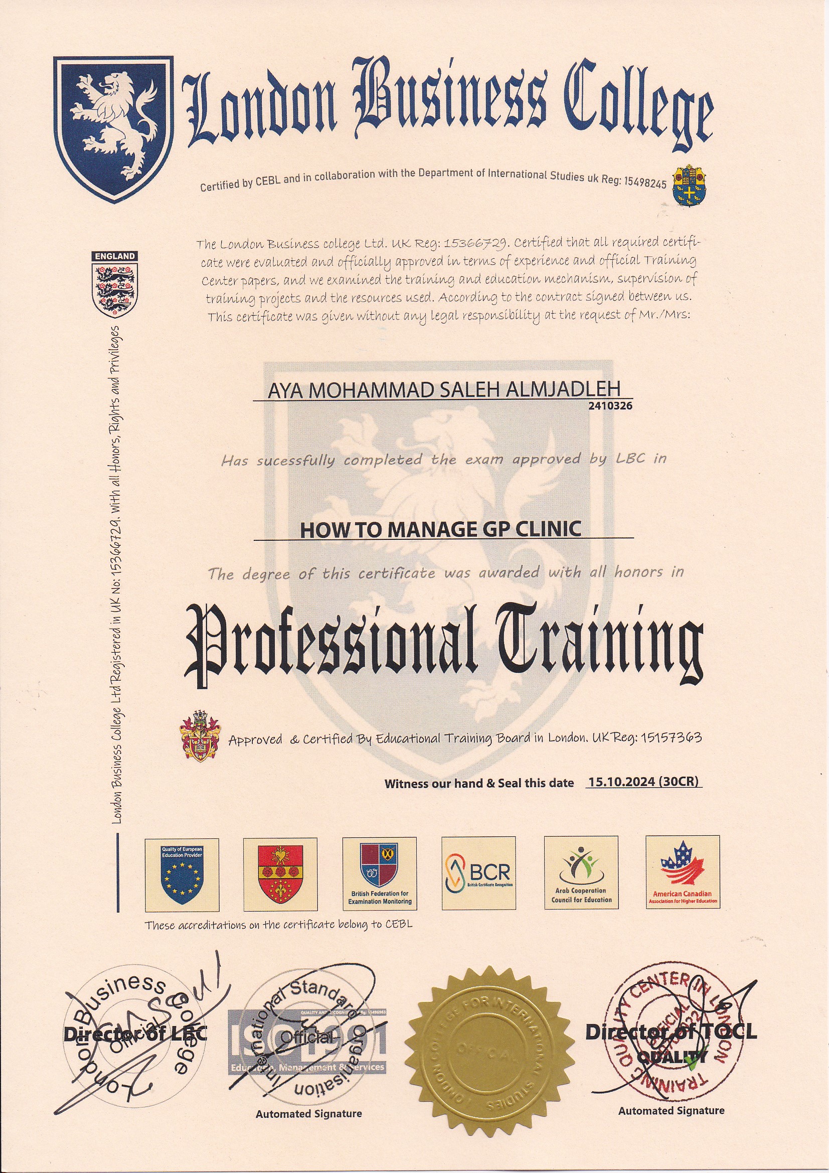 Hadel AL Manaseer Center/HOW TO MANAG GP CLINIC