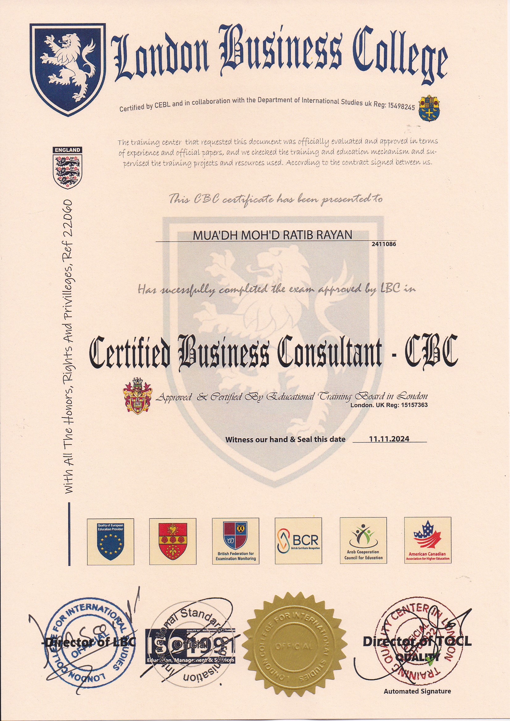 Approved by (Training Quality Center in London)