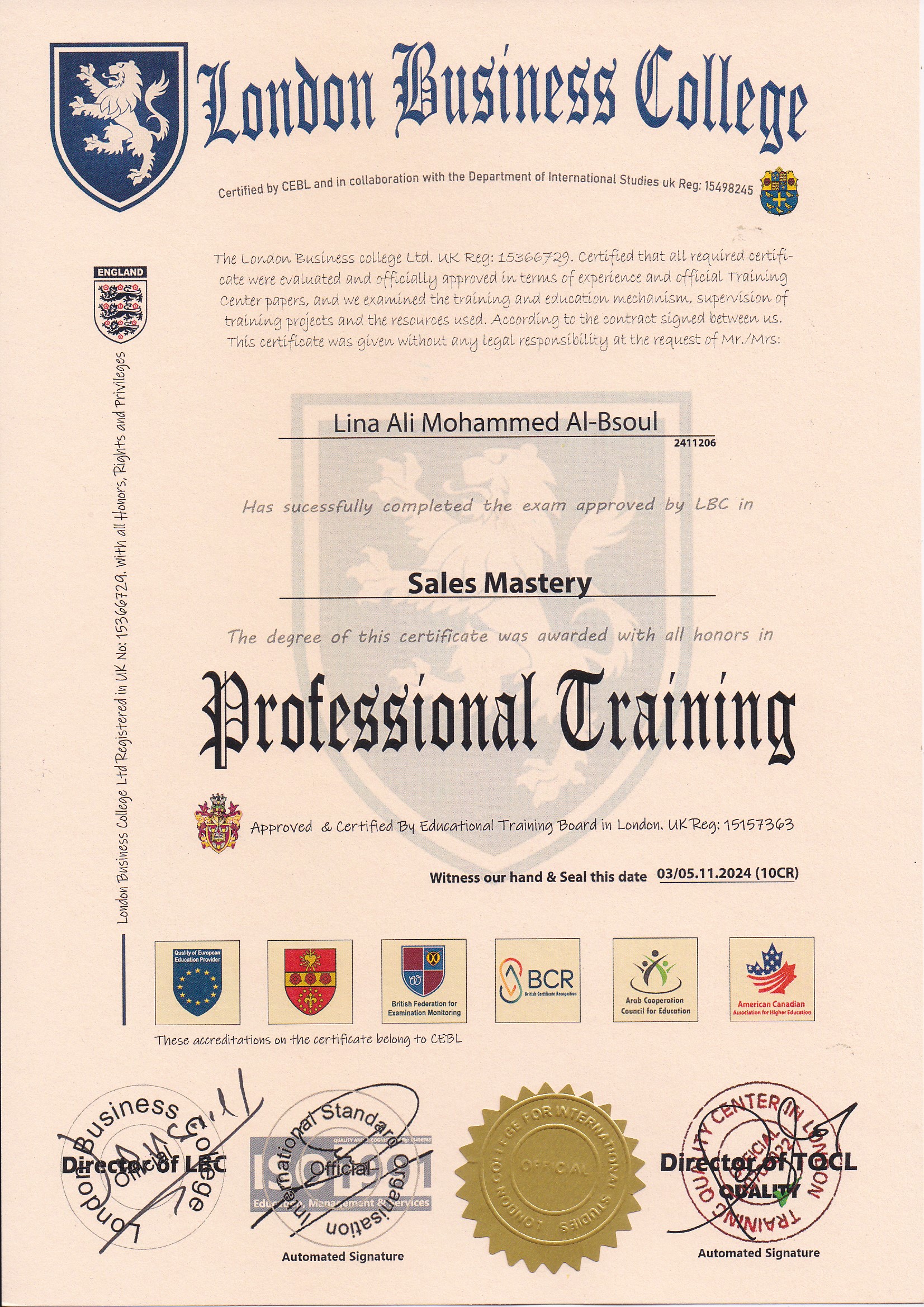 Approved by (Training Quality Center in London)