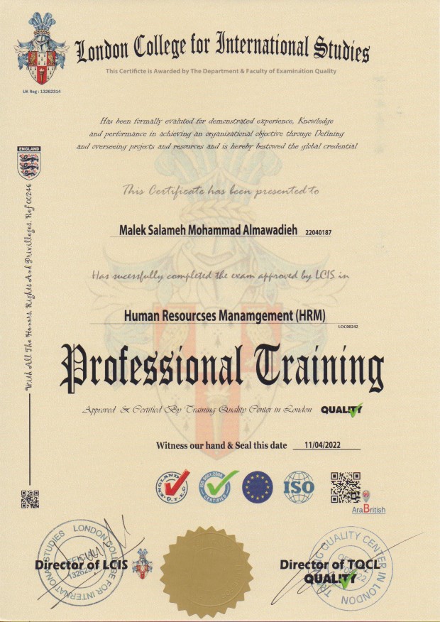 Trainer Tariq Al Ali /Human Resourcses Manamgement (HRM)