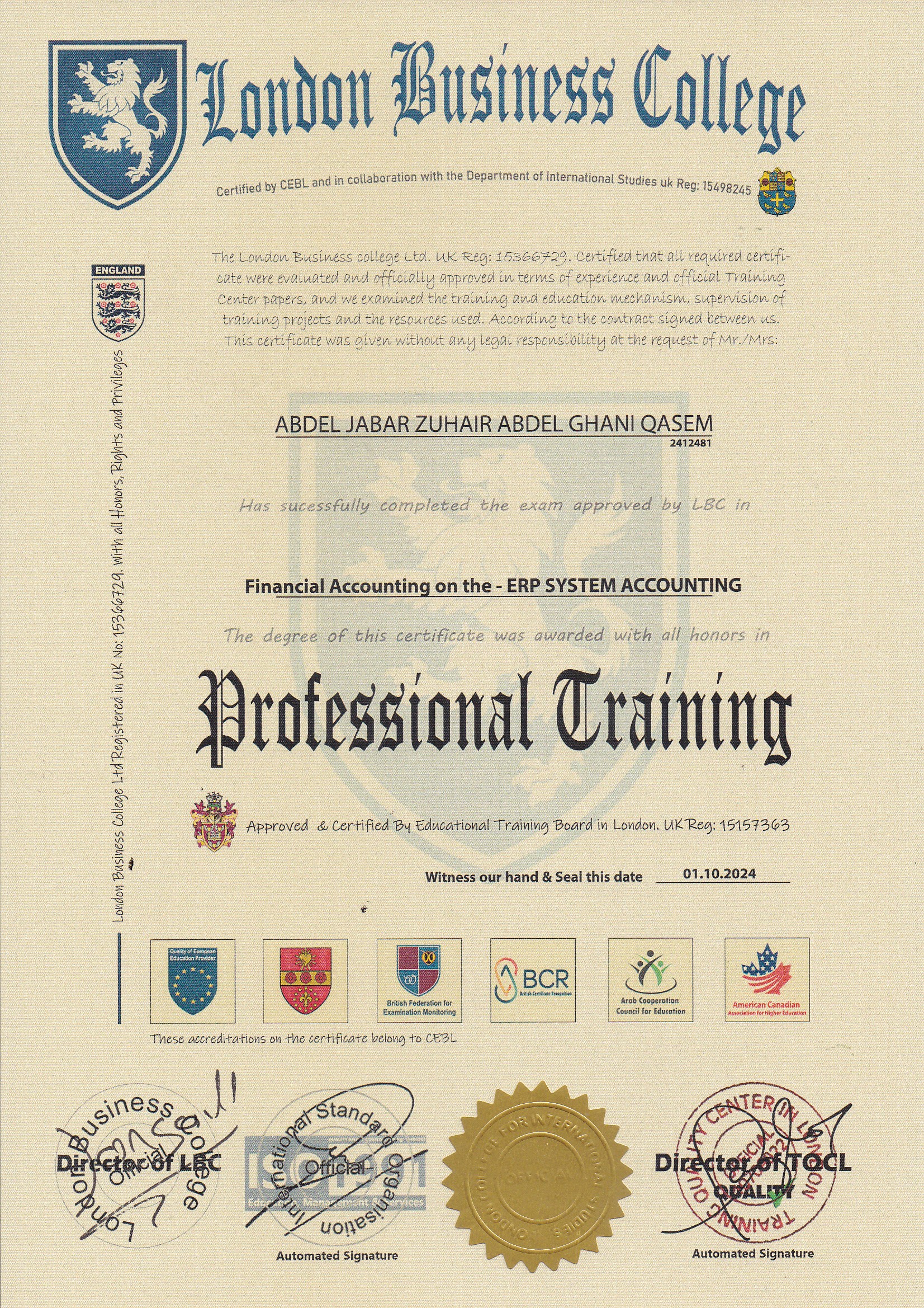 Approved by (Training Quality Center in London)
