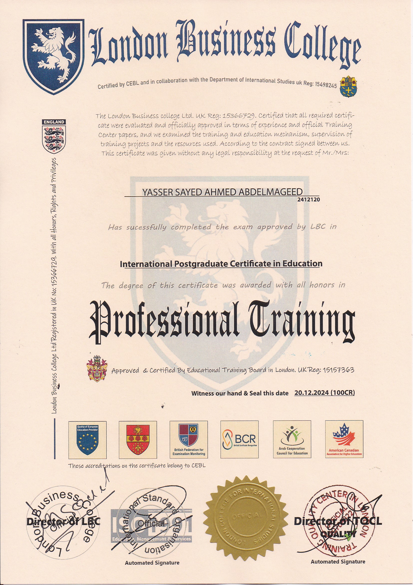 Fadi Al Suleiman/International Postgradute Certificate in Education